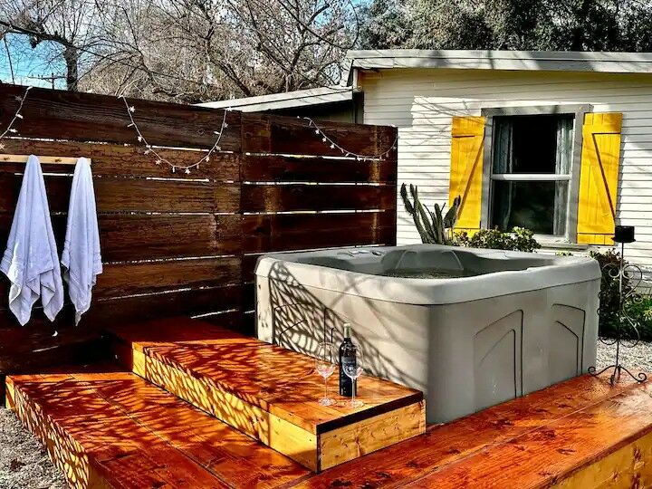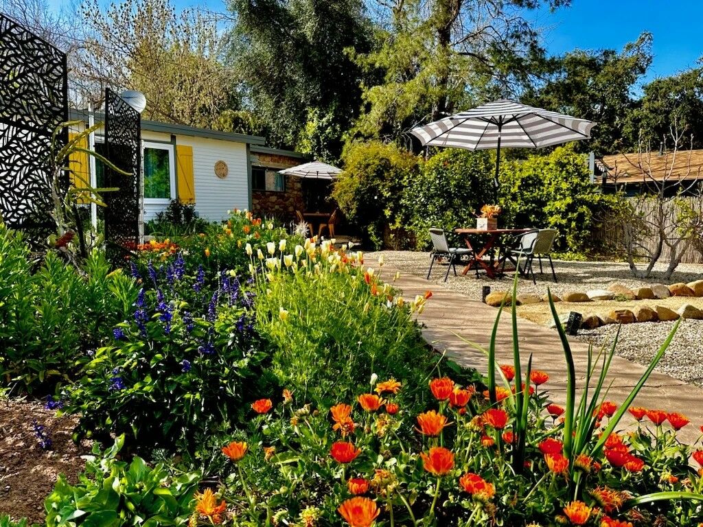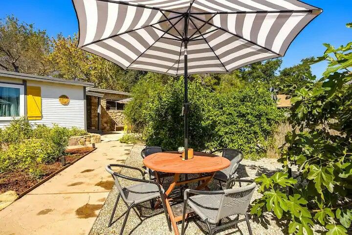 Step outside to our serene patios, where you can savor your morning coffee or simply unwind in the above ground Hot Tub --all while enjoying the fresh Ojai air. The outdoor area is perfect for barbecues and al fresco dining, allowing you to savor the area's pleasant climate. The outdoor space is surrounded by lush greenery, providing a peaceful oasis to escape the hustle and bustle of everyday life.