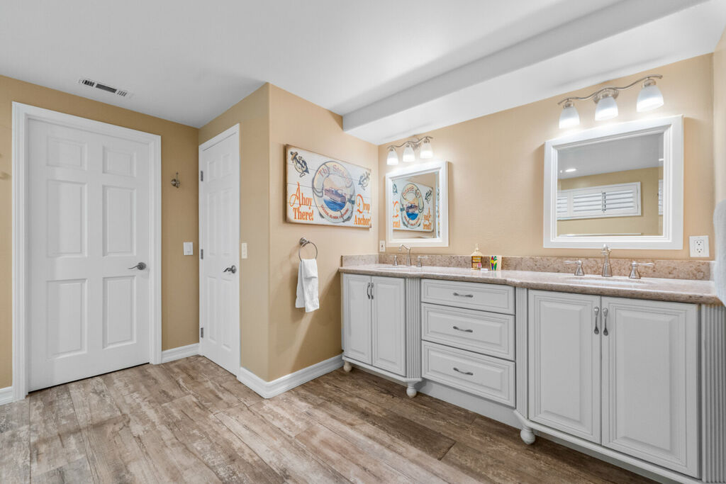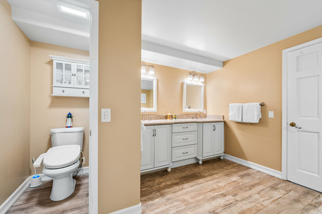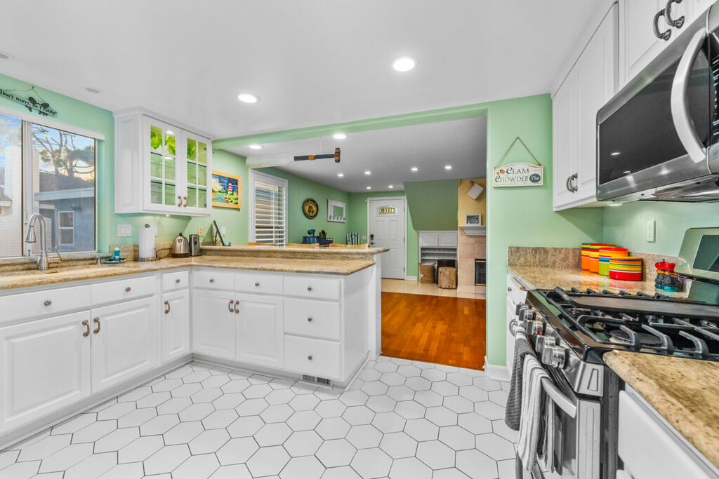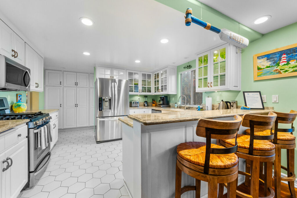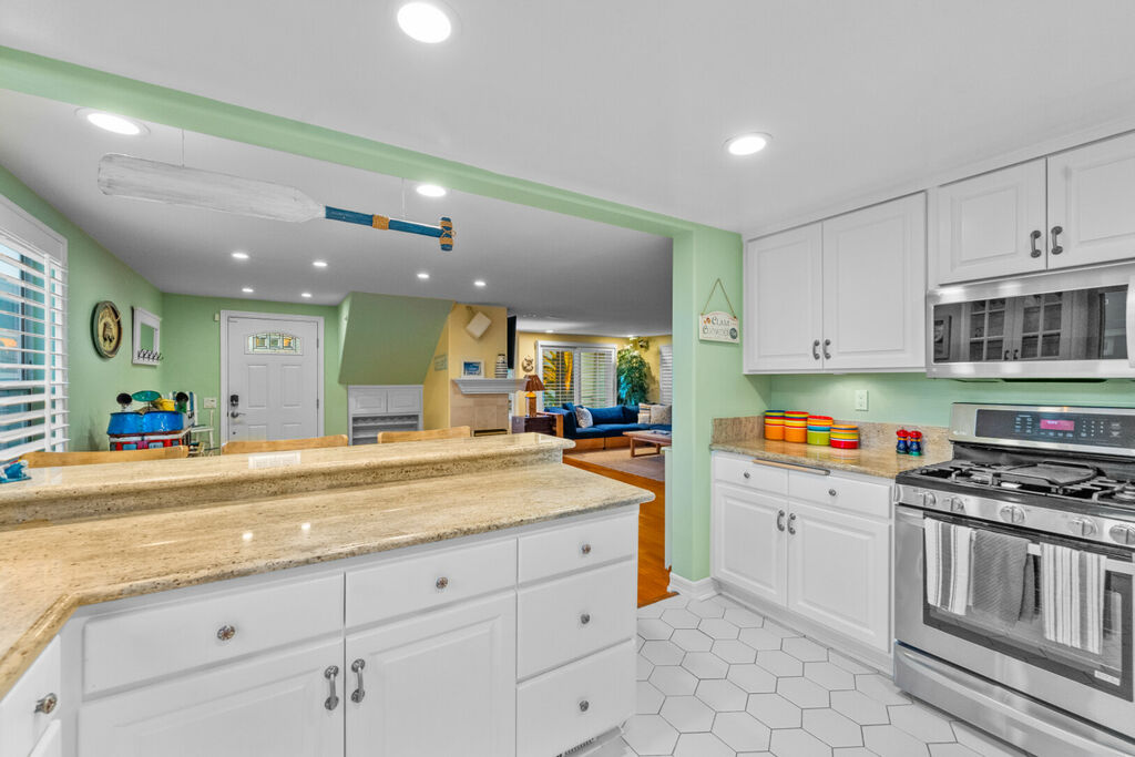 The kitchen is a chef’s dream, equipped with granite countertops, a gas range, a French-door fridge, and all the essentials you’ll need to prepare meals with ease. Enjoy casual bites at the breakfast bar or sit down together at the dining table for six.