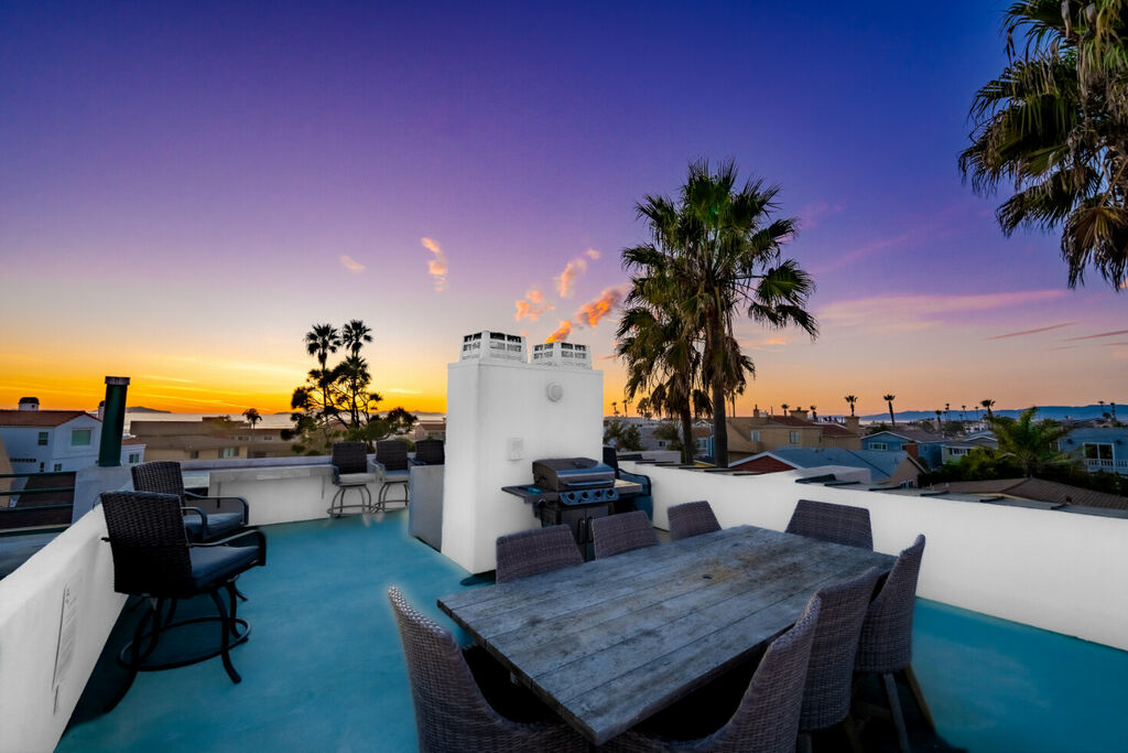 The highlight of this home is the expansive rooftop deck, offering panoramic ocean and mountain views. With a dining table for eight and a gas grill, it’s the perfect space for sunset dinners, evening drinks, or simply soaking in the coastal breeze.