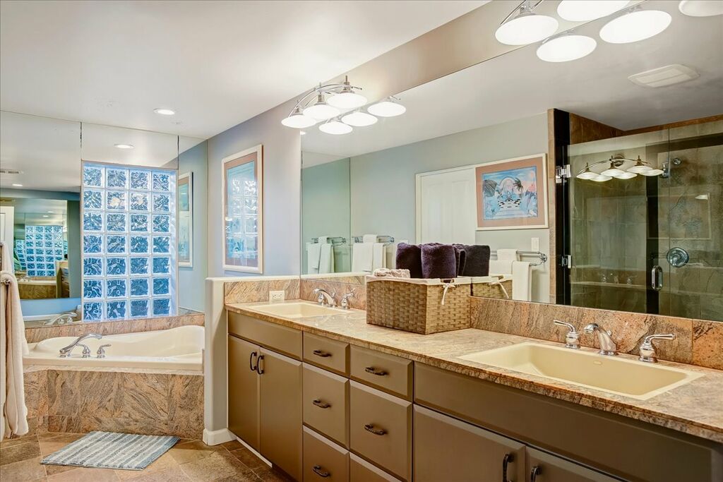 Both bedrooms in this rental boast their own ensuite bathrooms, ensuring privacy and comfort for all guests. The bathrooms are elegantly designed and equipped with modern fixtures, providing a spa-like experience for your convenience.