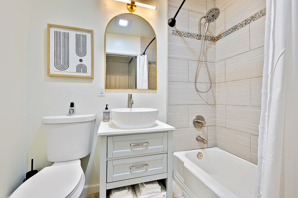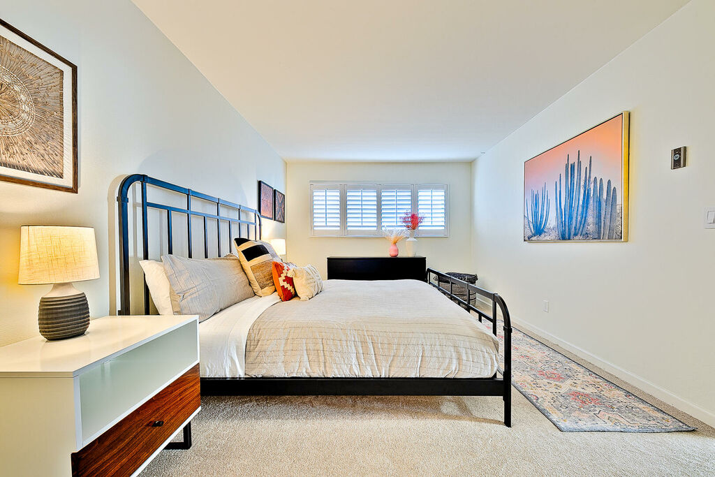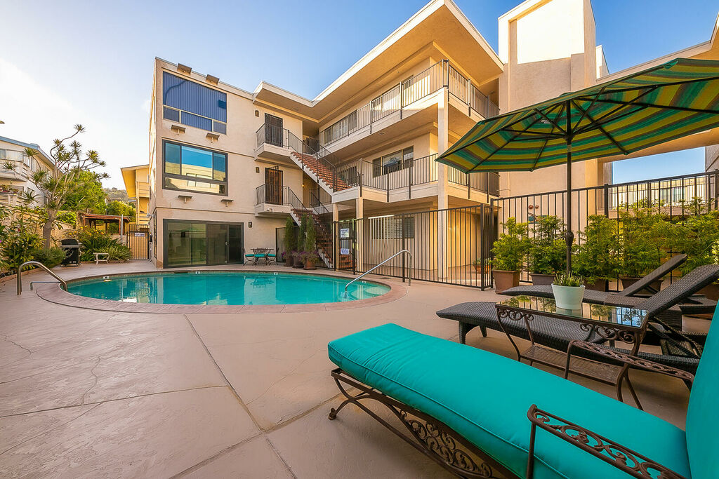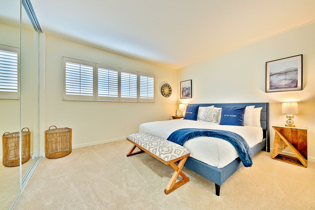 Retreat to the spacious primary bedroom with a king bed and tastefully upgraded ensuite, while the second bedroom also offers a king bed across from the hall bathroom with standing shower. A sofa sleeper in the living room provides extra flexibility for guests. Additional highlights include high-speed internet, a Smart TV, and access to complex amenities including assigned underground parking, a community pool, shared BBQ area, and laundry. With famous beaches, local restaurants, coffee shops, bars, and shopping just moments away, this home blends relaxation and convenience seamlessly. Treat yourself to an unforgettable Point Loma escape—secure your extended stay today!