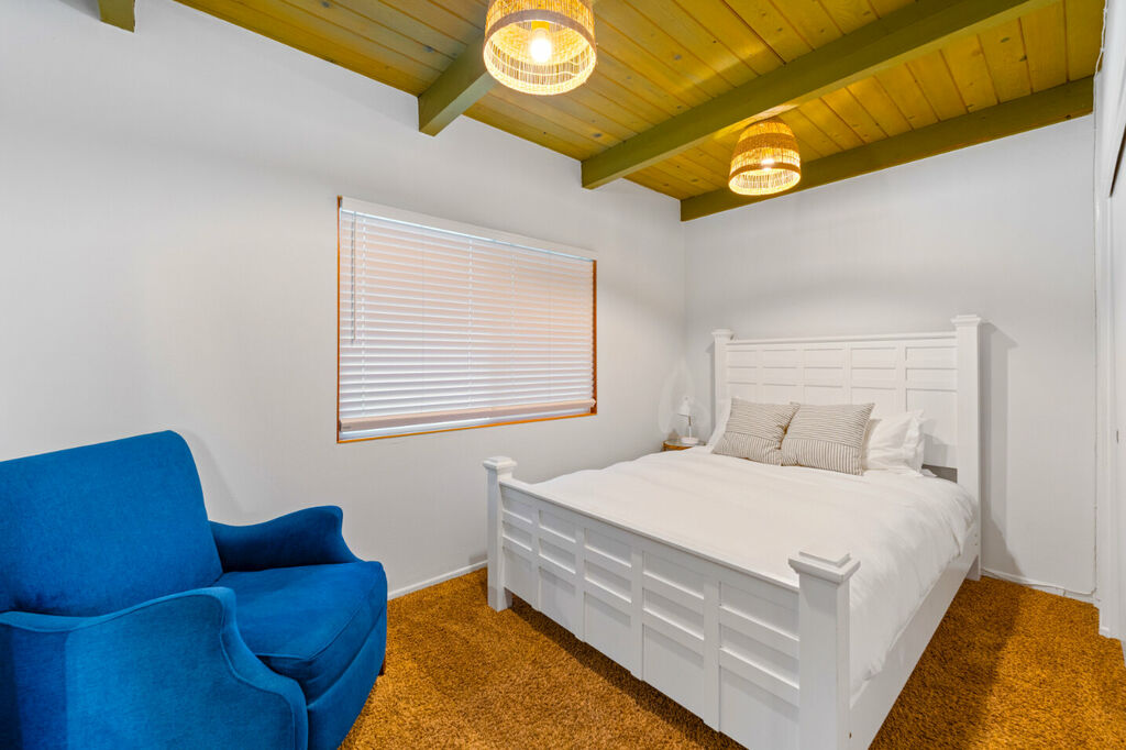 Perfect for two couples or a small family, our bungalow offers a delightful two-bedroom setup. The larger bedroom boasts a California king-size bed with a plush hybrid mattress, while the smaller bedroom features a comfortable queen-sized bed.