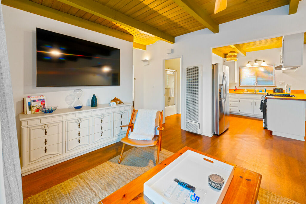 Nestled in a fantastic location, our charming beach bungalow is just steps away from the pristine sands of Silver Strand Beach. Recently remodeled, our cozy retreat offers the perfect escape to relax, unwind, and soak in the vibrant community ambiance. This private two-bedroom, one-bath haven features off-street parking, inviting spaces, modern appliances, and an array of beach amenities. With a blend of contemporary updates and mid-century charm, it’s an ideal getaway.