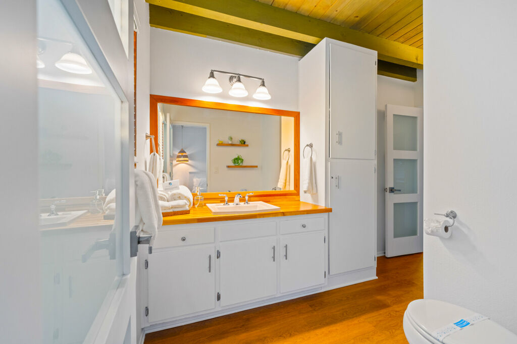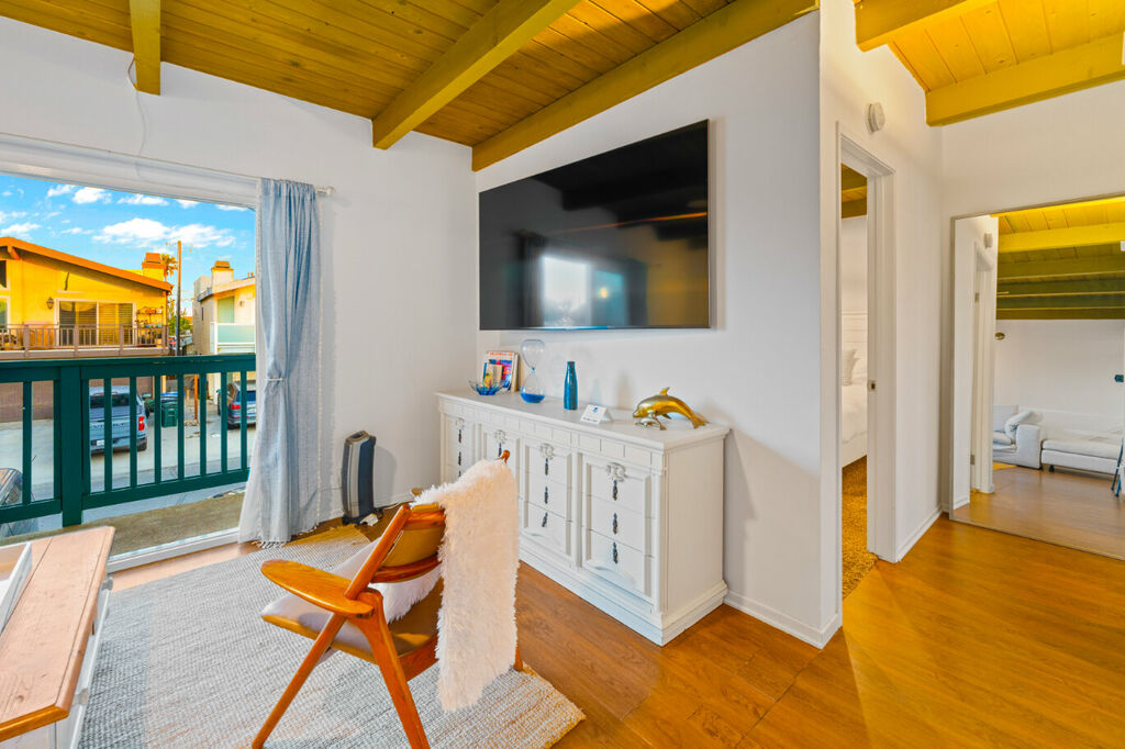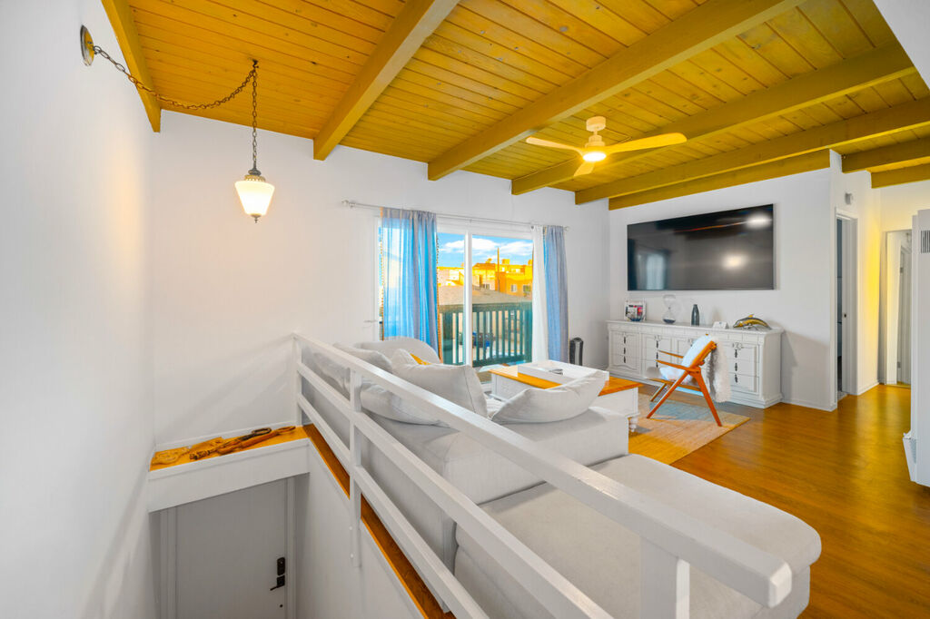 The bright and airy living room invites you to unwind with a window slider that lets in the refreshing sea breeze. Lounge on the oversized Restoration Hardware cloud sofa and enjoy your favorite shows on the brand new smart TV, equipped with all major streaming apps.