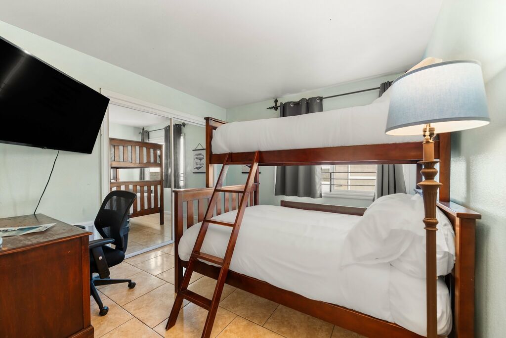 Two master suites with king beds and a third bedroom with a bunk, full, and twin provide plenty of sleeping space for families or groups. Relax in the jetted tub in the downstairs master or gather in the open living areas with WiFi, TVs, heating, electric fireplaces, beach towels, and a full kitchen.