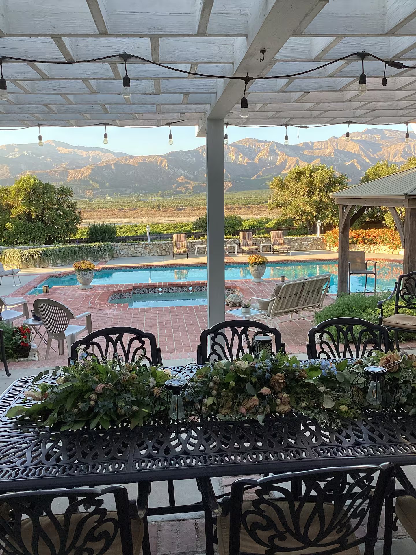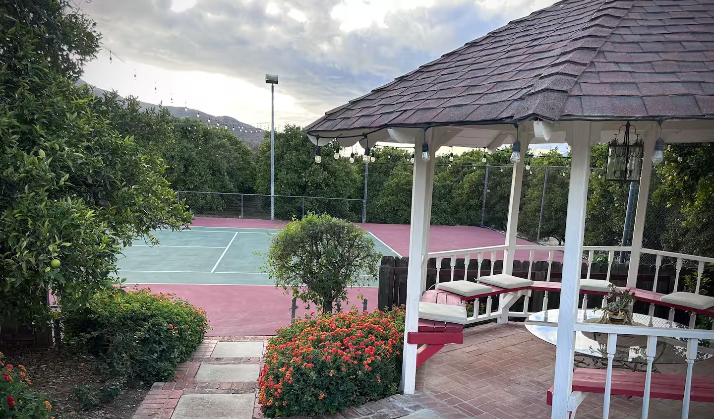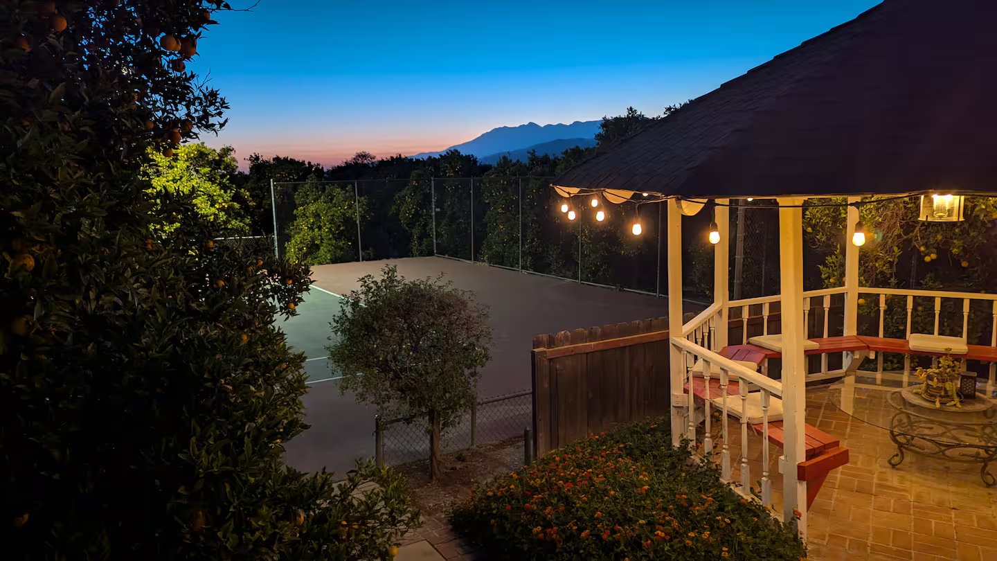 The property itself feels like a private resort. The expansive backyard and grounds offer endless space to gather, play, and take in the natural beauty of the valley. Cool off in the swimming pool, soak in the jacuzzi beneath open skies, or enjoy meals together at one of several outdoor dining areas designed for lingering conversations and sunset views. A private tennis court with its own gazebo viewing area overlooks the surrounding orchards and valley, while lawn games like horseshoes and bocce ball invite friendly competition. With wide open spaces, multiple seating areas, and peaceful orchard paths to wander, the outdoor setting is perfect for everything from casual family time to reunions, and gatherings alike (events must be pre-approved and may be subject to additional fees).