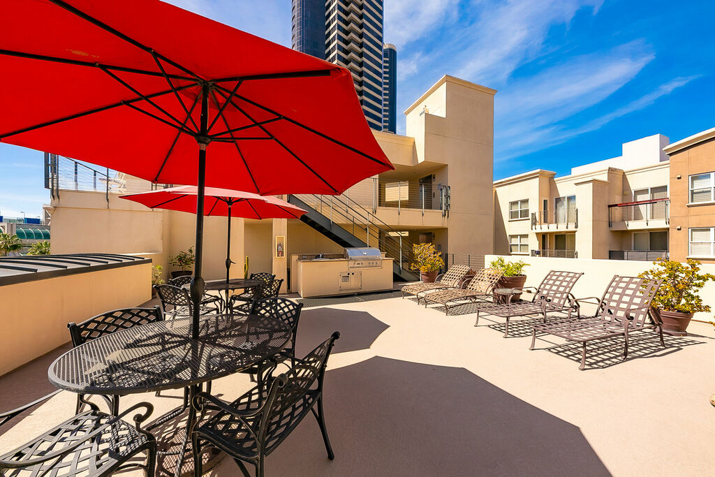 Enjoy building amenities including a well-equipped gym, a designated parking space, a sleek lobby, and access to the shared BBQ deck with sun loungers—perfect for soaking up the California sun.