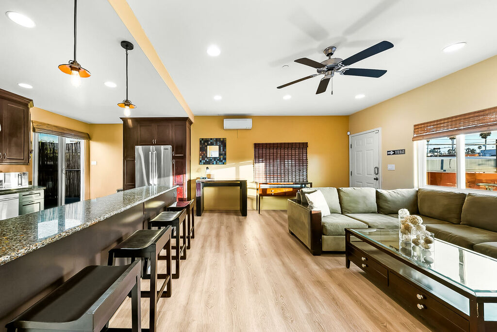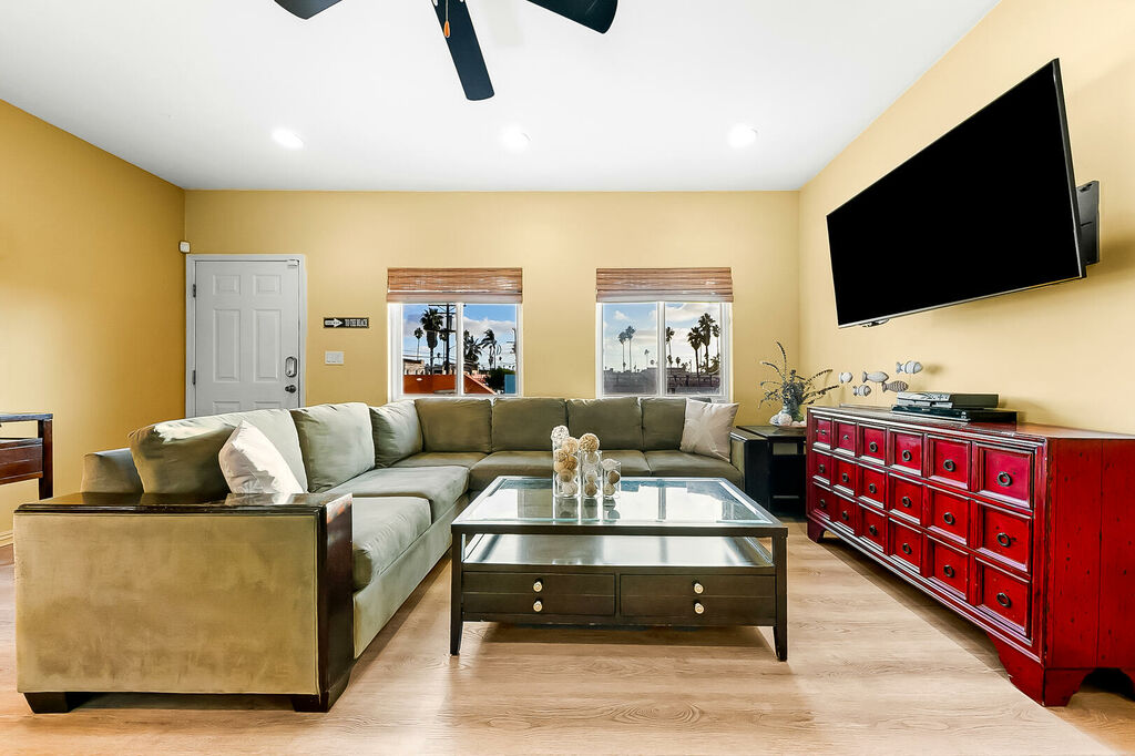 The true showpiece of this home is the massive 600+ square foot private rooftop deck—an extraordinary open-air retreat with no obstructions and endless sunshine. Lounge in the San Diego sun, fire up the BBQ, gather around the firepit with sunset cocktails, and dine al fresco under the stars with coastal breezes all around. With your own dedicated parking space (though you may never need it), you can park once and explore OB entirely on foot—from grabbing a slice and craft beer next door to catching a sunset at the pier or browsing the weekly farmers market.