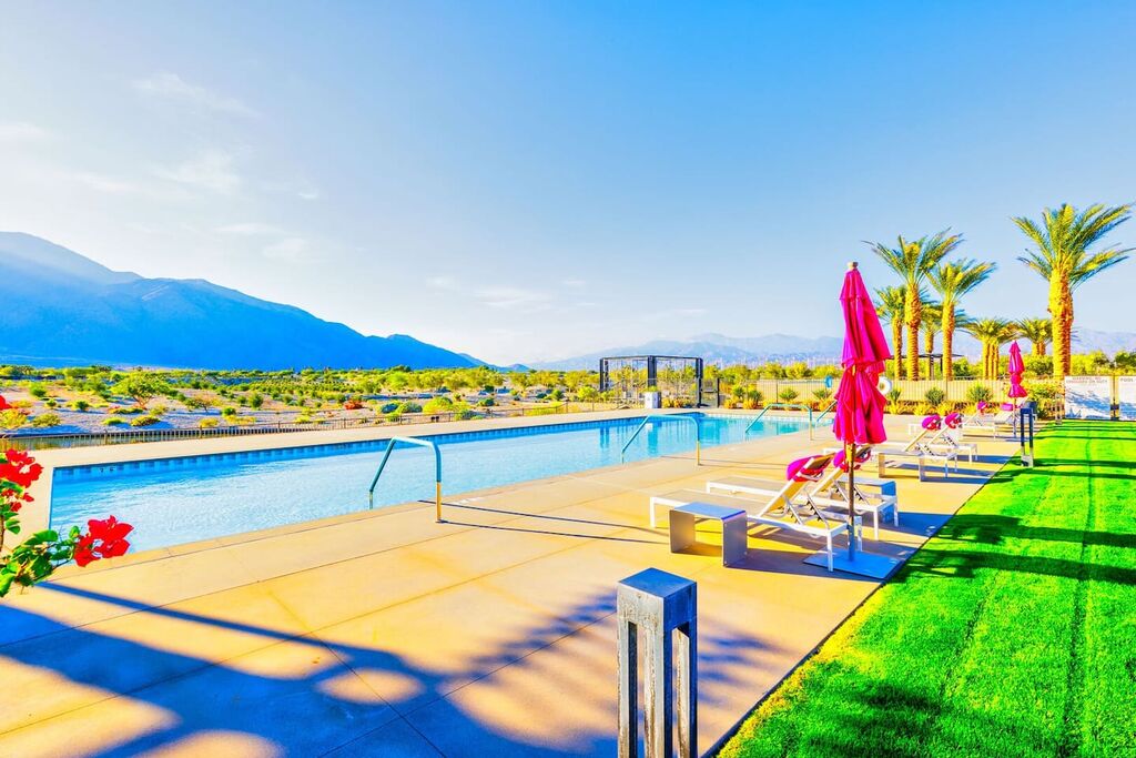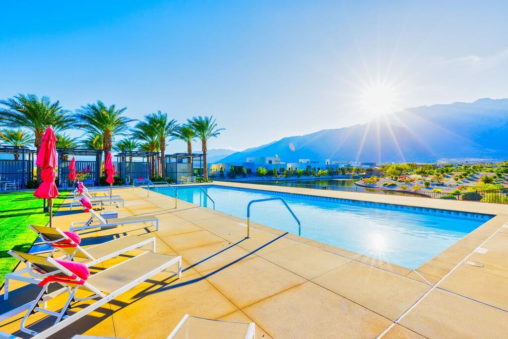 As a part of the Miralon community, revel in access to extensive walking and biking trails alongside scenic dog parks. Community amenities abound, featuring a sizable lap pool, a family pool with a Jacuzzi in a resort-style setting, bocce ball courts, and a cutting-edge gym. Furthermore, electric vehicle chargers are at your disposal for added convenience during your stay. Experience a desert retreat unlike any other with us.