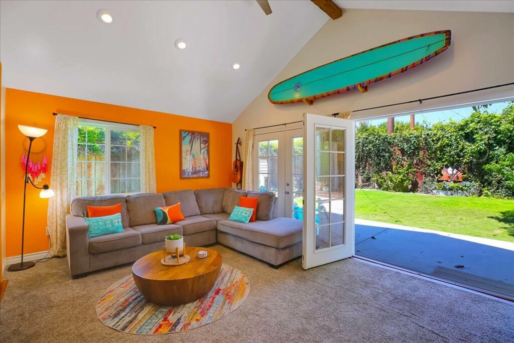 The living room is a cozy retreat, featuring ample seating and a layout that encourages relaxation and conversation. Soft natural light filters in through well-placed windows, creating a warm and welcoming ambiance.