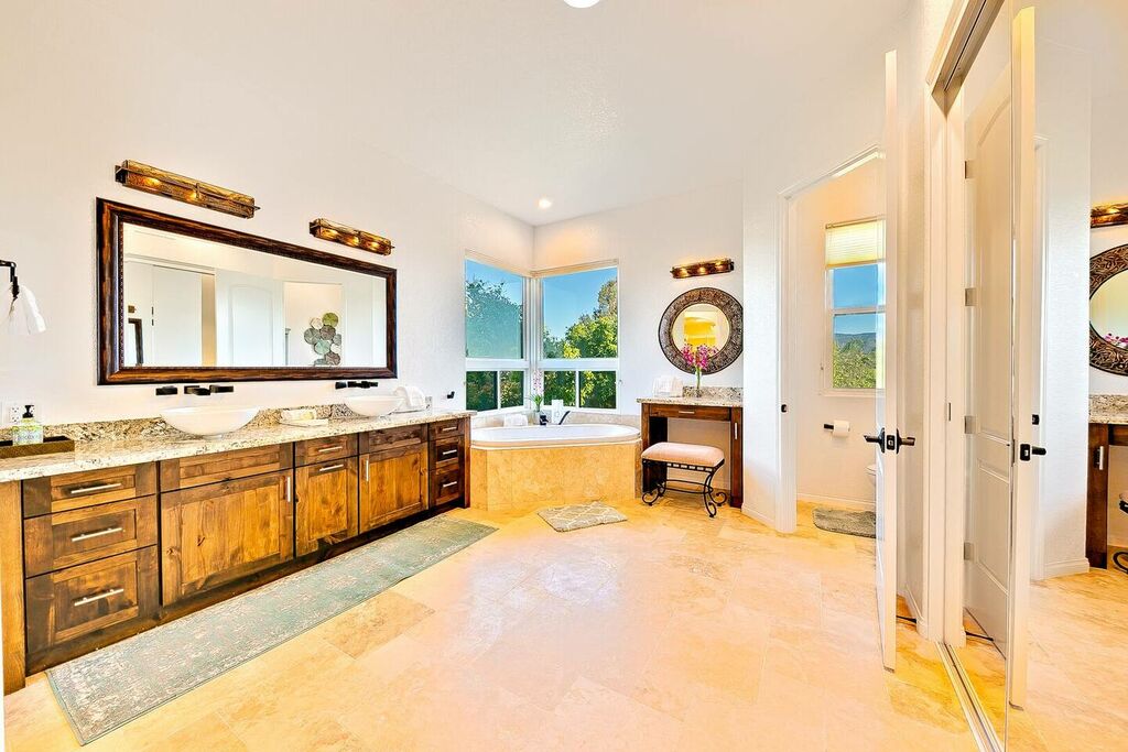 Breathtaking views of Mount Palomar & Temecula Wine Country make this home perfect for entertaining or for relaxing in resort-like tranquility. The all-new kitchen has custom cabinetry with soft-close doors & pull-outs; Talavera tile accents; granite sink & countertops; Zephyr island range hood; Bosch dishwasher; KitchenAid ice machine, oven & convection microwave; GE Profile induction range. The home is equipped with a whole house water filtration system.