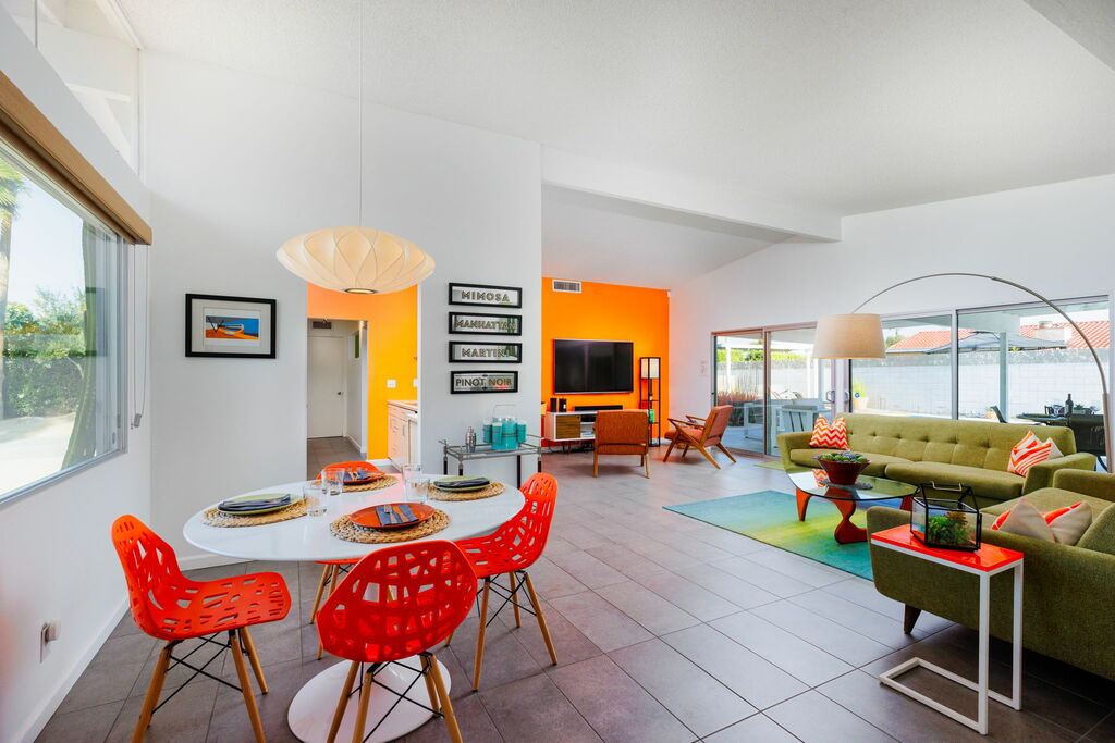 This real 'mid-century classics' property features a stunning interior with mid-century modern decor making a comfortable, trendy place to vacation.