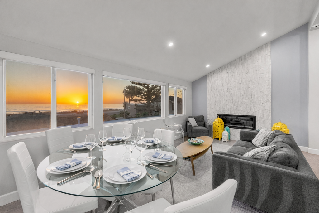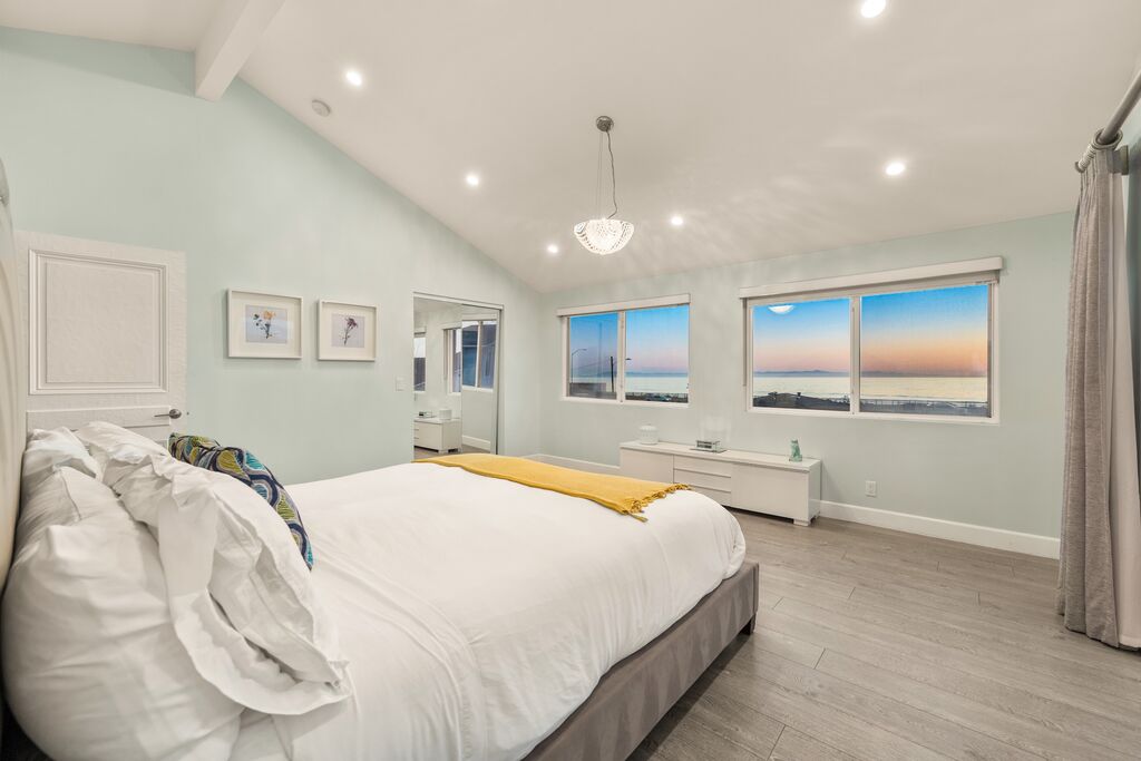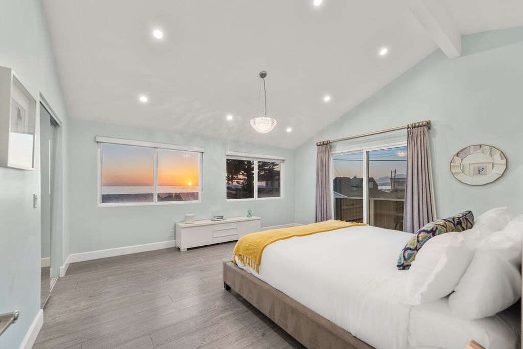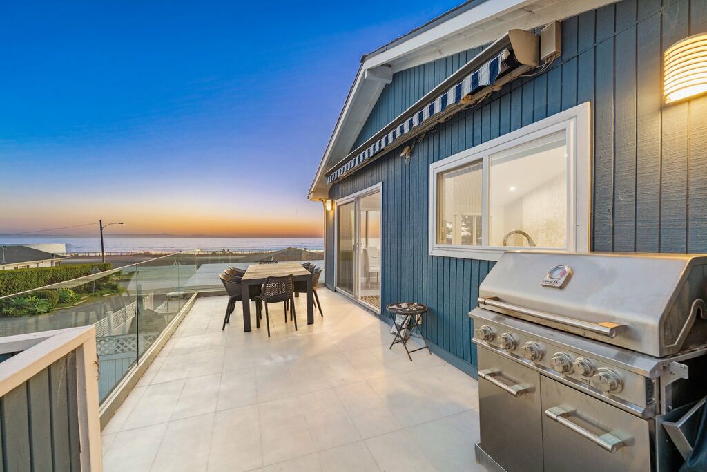 Inside, the home is thoughtfully designed, offering an open and airy main living space that invites you to gather, relax, and take in the ocean views from nearly every angle. Large windows frame the coastline with crisp views of the channel islands, filling the home with natural light.