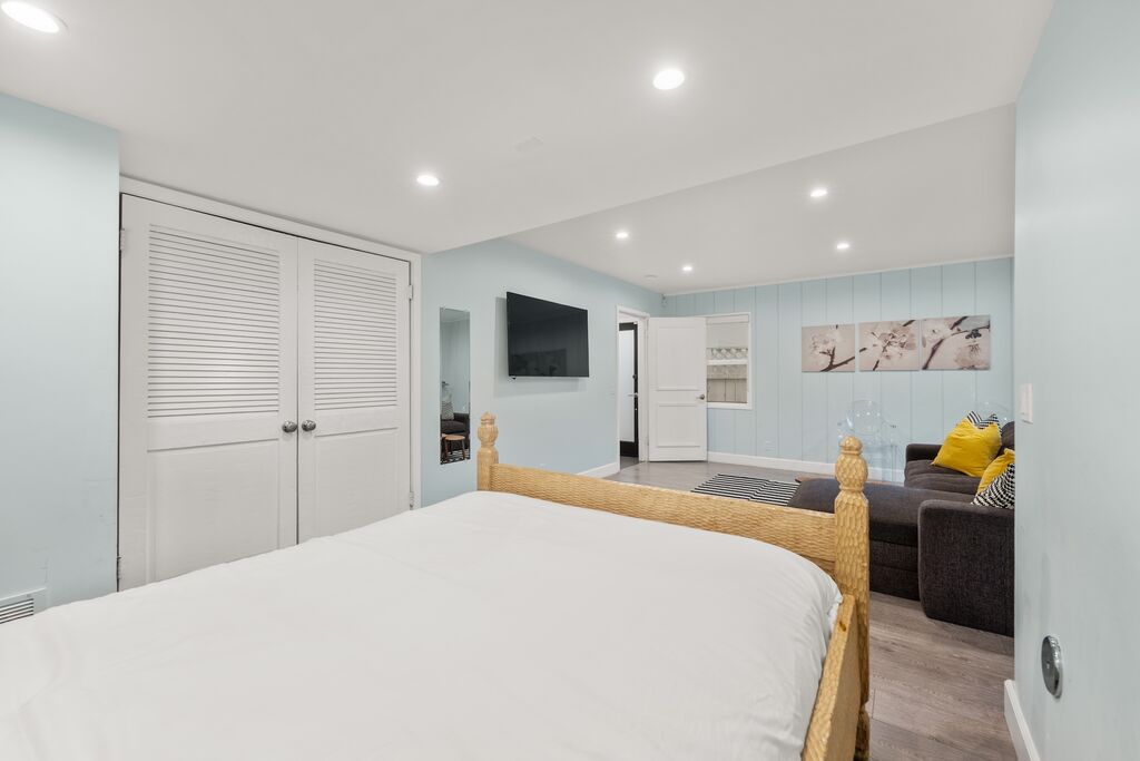 This beach home comfortably accommodates families and groups with a well-planned bedroom layout. The master bedroom features a king bed and ensuite bathroom. Another bedroom includes a queen bed along with a full-size sleeper sofa, perfect for added flexibility. A third bedroom is ideal for kids or younger guests, featuring a twin-over-full bunk bed, while the fourth bedroom offers two twin beds, making it easy to accommodate a variety of sleeping arrangements. Multiple guest bathrooms ensure comfort and convenience for everyone throughout the stay.