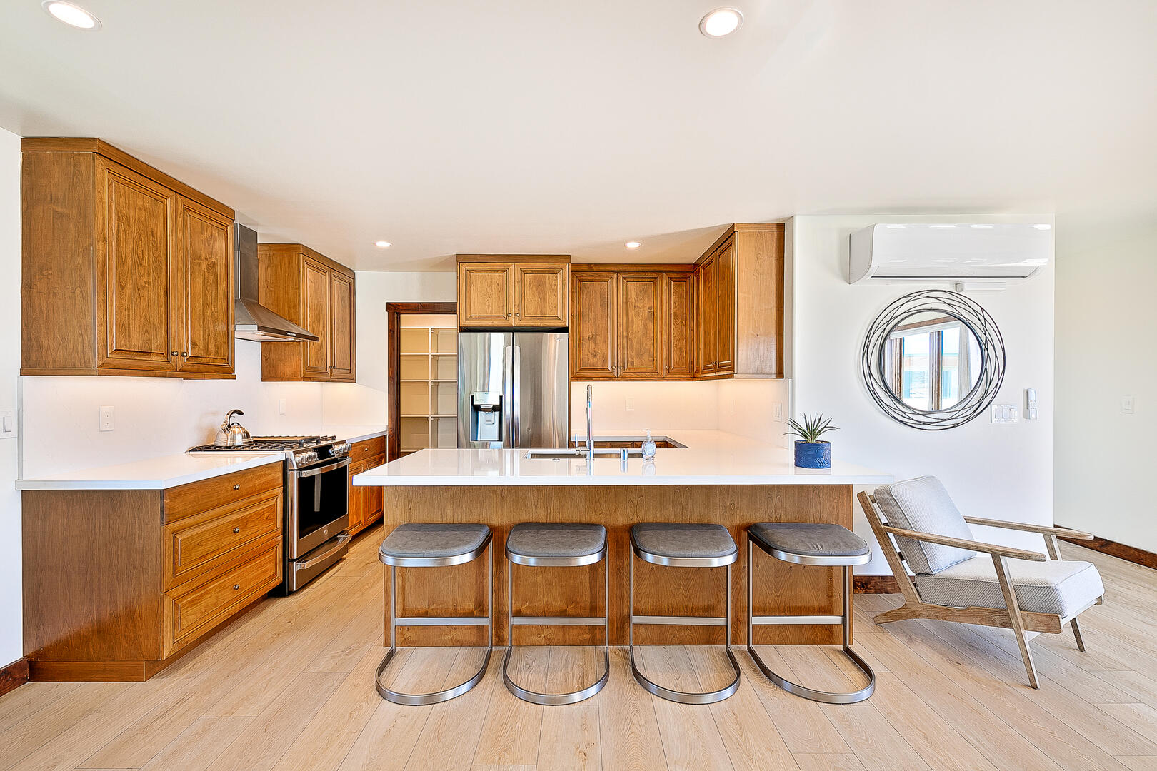 -For larger gatherings, the attached main home, 'La Hacienda', can be rented alongside the this house, which has six bedrooms and 4 bathrooms. Together, the two properties form a full family villa retreat for up to 20 guests, with ample parking, two laundry units, two BBQ areas, and expansive rooftop decks.