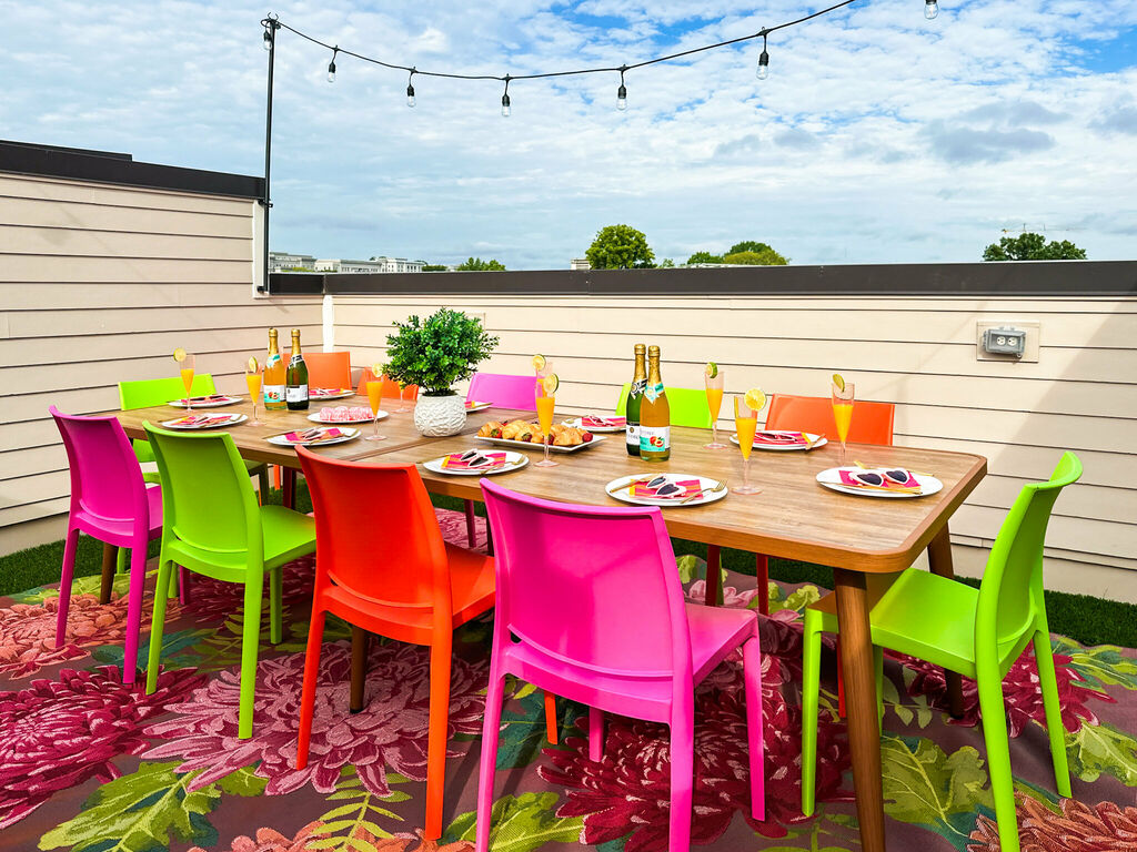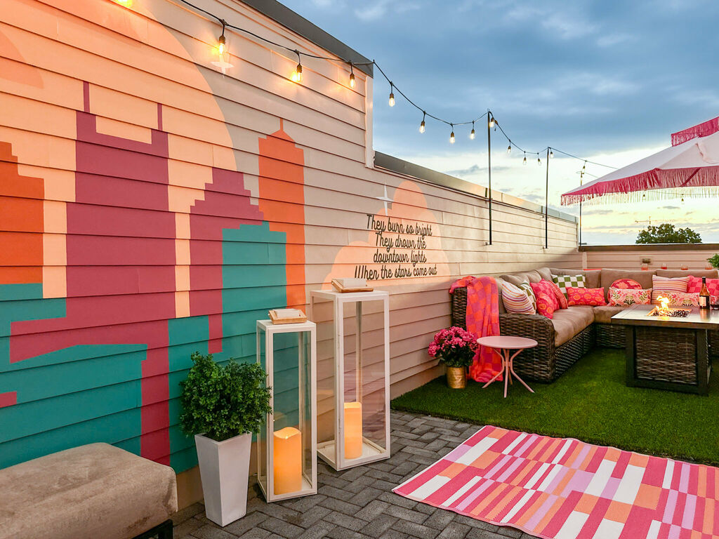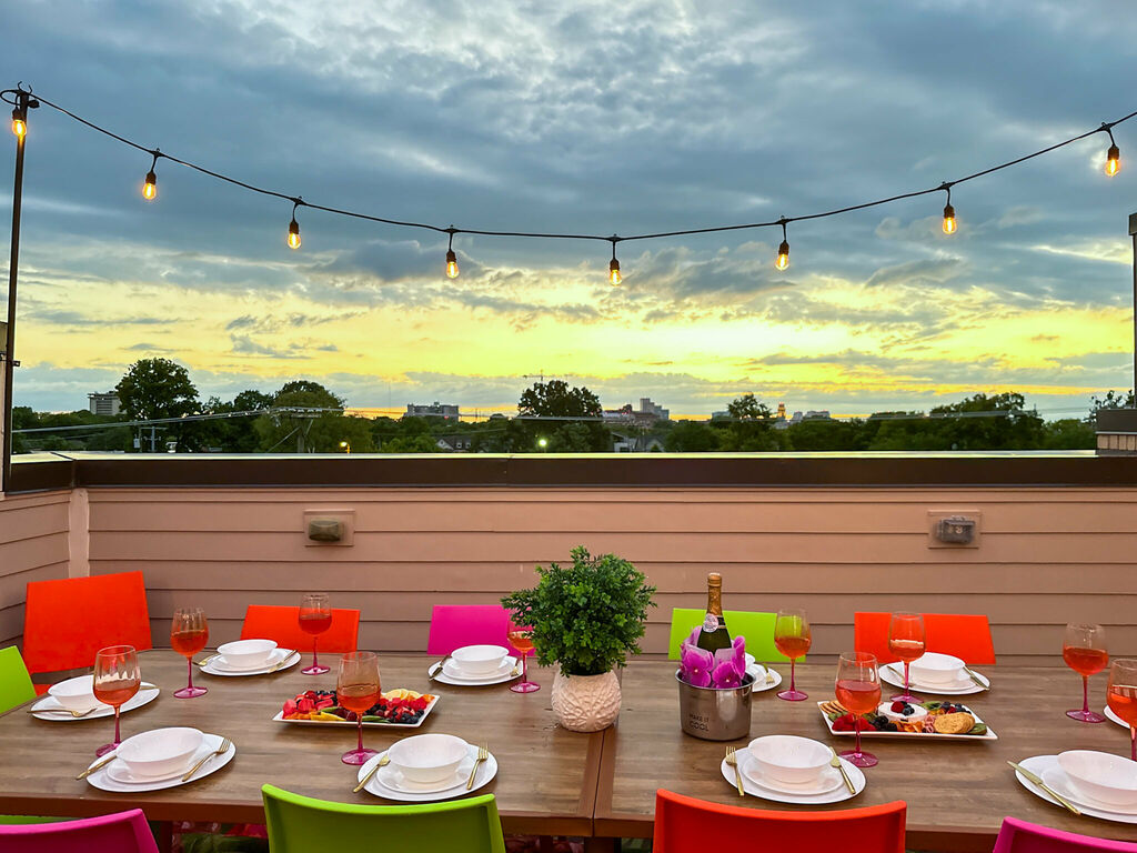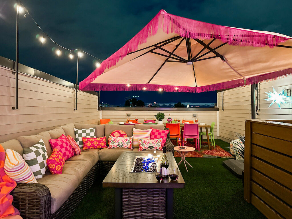 “The rooftop deck with the firepit is amazing! I love how all the rooms are decorated” – Mia