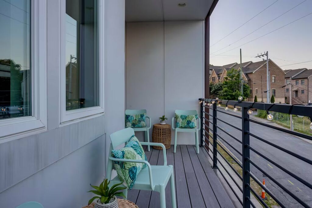 Step outside to your private patio or balcony, where the flicker of the fireplace casts a golden glow against the evening sky. This is a space made for late-night conversations, the clink of glasses, and the gentle hum of Nashville in the distance.