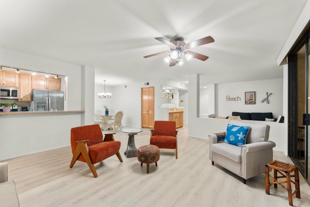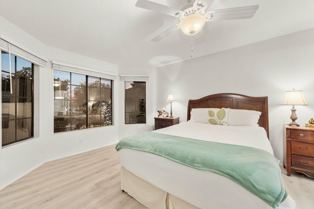 Set within The Colony at Mandalay Beach, this single-level Madeira villa offers a comfortable coastal stay in Oxnard. The layout is easy to settle into, with all rooms on one level and no stairs to navigate. The living area flows naturally into a den that works well as a TV room or a quiet place to get some work done. Two bedrooms and two bathrooms provide practical space for guests who want both convenience and privacy.
