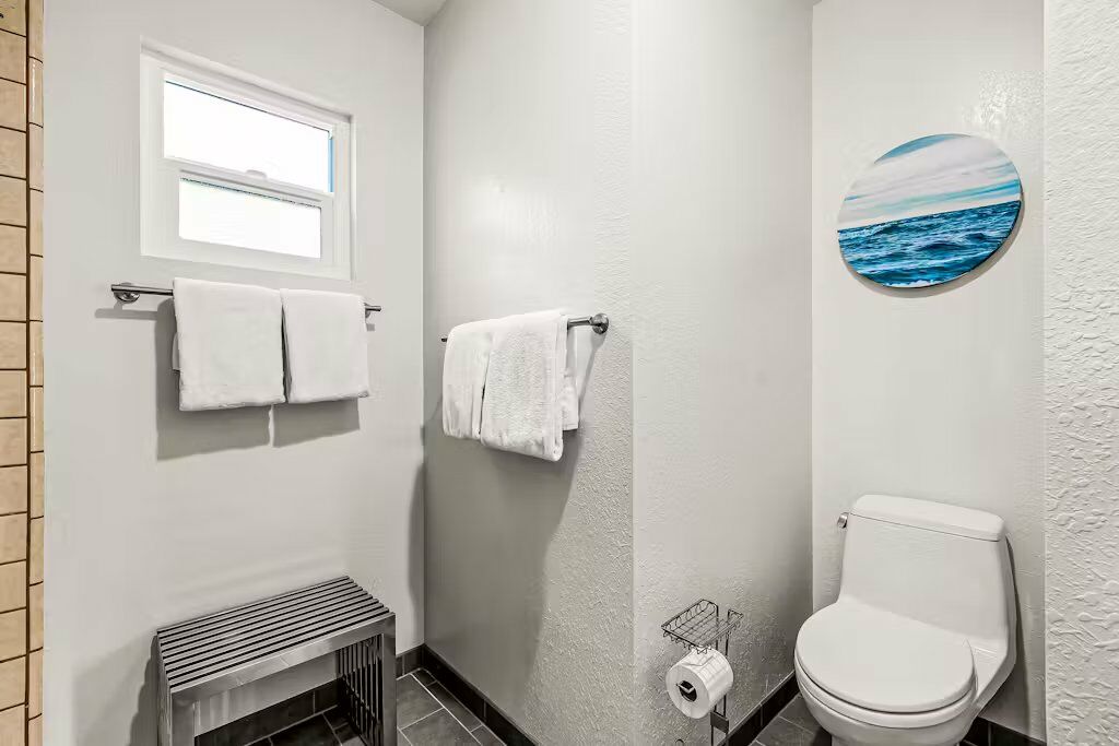 Inside, this newly remodeled home boasts high ceilings, Cali bamboo flooring, and stylish finishes throughout. Two spacious living areas provide plenty of room to relax and entertain, with one featuring a 70” smart TV and the other offering a cozy gas fireplace and 55” smart TV. Both living areas include sleeper sofas and comfortable seating. The fully equipped kitchen features high-end appliances, sleek concrete countertops, and thoughtful extras such as a Keurig coffee maker and blender, making it easy to prepare meals for the whole group. Gather around the dining table, which seats up to 10 guests, for shared meals and lively conversation.