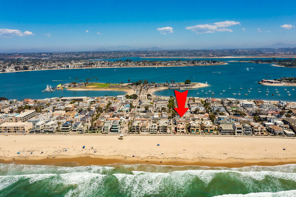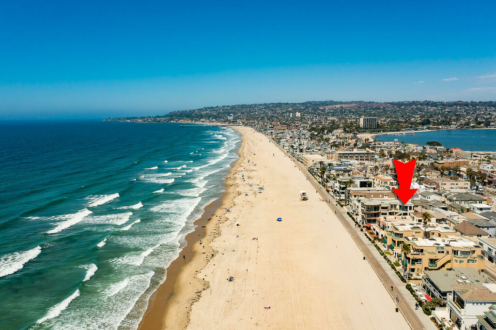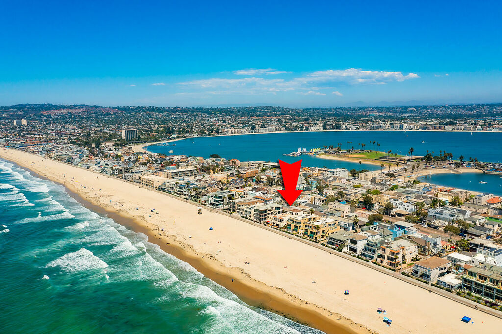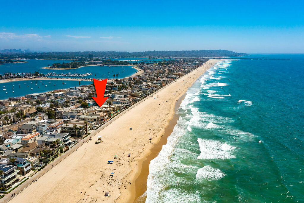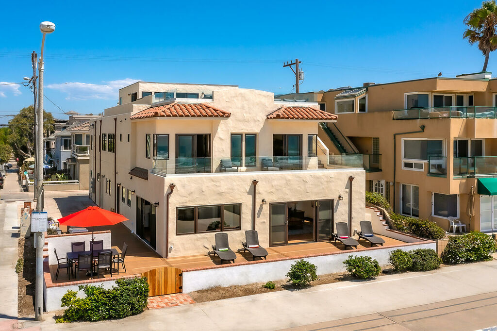 Discover a truly exceptional oceanfront escape in the heart of Mission Beach with this impeccably remodeled, multi-level Spanish-style villa comprised of two separate units offering a combined eight bedrooms, 5.5 bathrooms, air conditioning, parking for 4+ vehicles, a hot tub, fire pit, and a massive rooftop deck. Designed for large families, multi-generational groups, or friends traveling together, this rare setup provides the perfect balance of shared gathering spaces and private retreats, all framed by breathtaking ocean views and unforgettable Mission Beach sunsets.