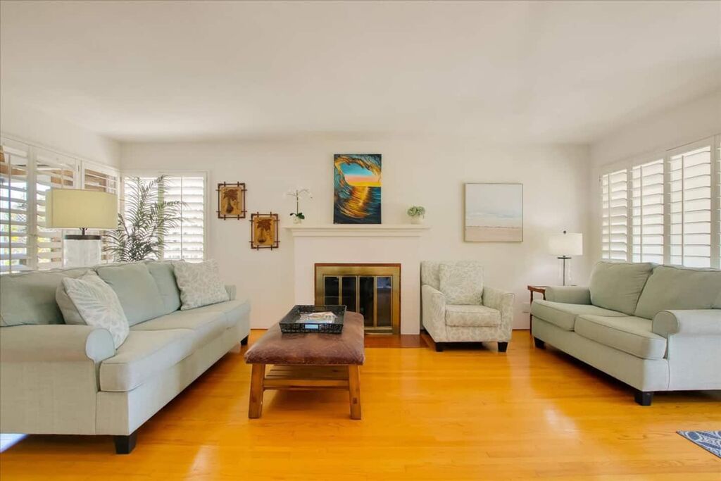 Step inside this coastal retreat and be greeted by a spacious and inviting retro-atmosphere. You’ll love the one-level floor plan and the beautiful outdoor space, including a pergola-covered patio and a rooftop deck with a peek-a-boo view of the Pacific. And, with the beach so close, you can dip your toes in the sand in no time.