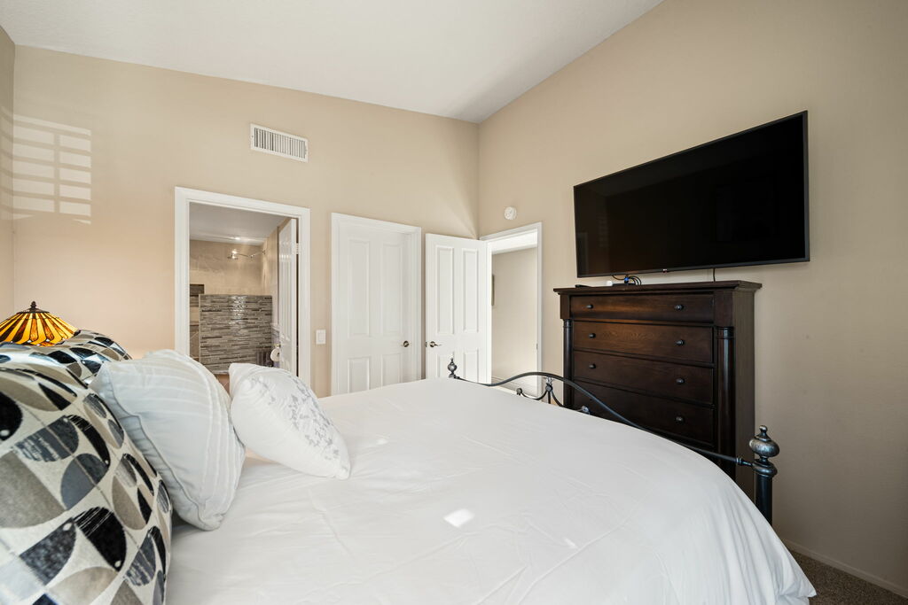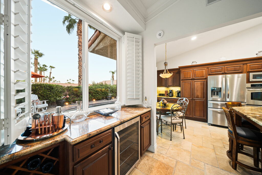 This single-family home is the perfect escape, offering not only a sparkling saltwater pool and spa for relaxing and rejuvenating but also a firepit for the gatherings. Love eating outdoors? The spacious outdoor kitchen area is perfect for gathering for dining al fresco. Whether you're here to tee off at the nearby golf courses or simply unwind by the pool, Palm Breeze Escape offers a seamless blend of comfort and style.
