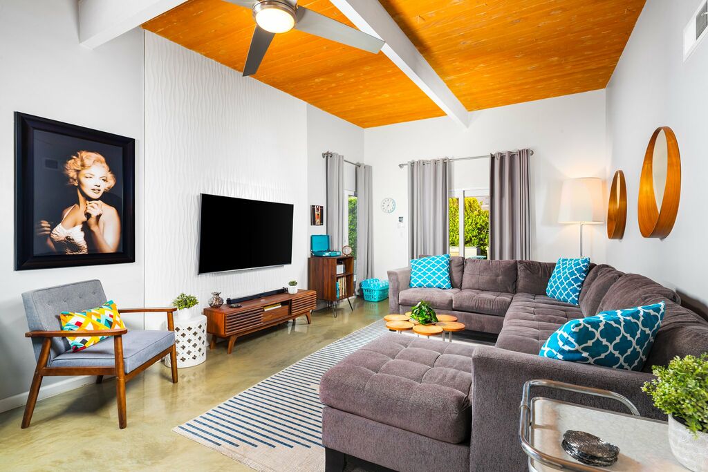The home features three well-appointed bedrooms in the main house—each with a TV and ample storage—plus a detached casita offering a quiet space to unwind (please note: the casita does not include its own bathroom). The main bathroom is spacious and well-lit; the second, more compact, offers added convenience.