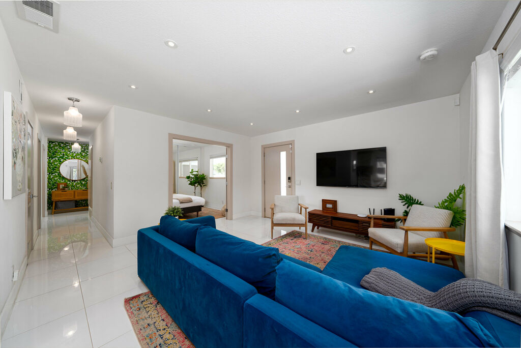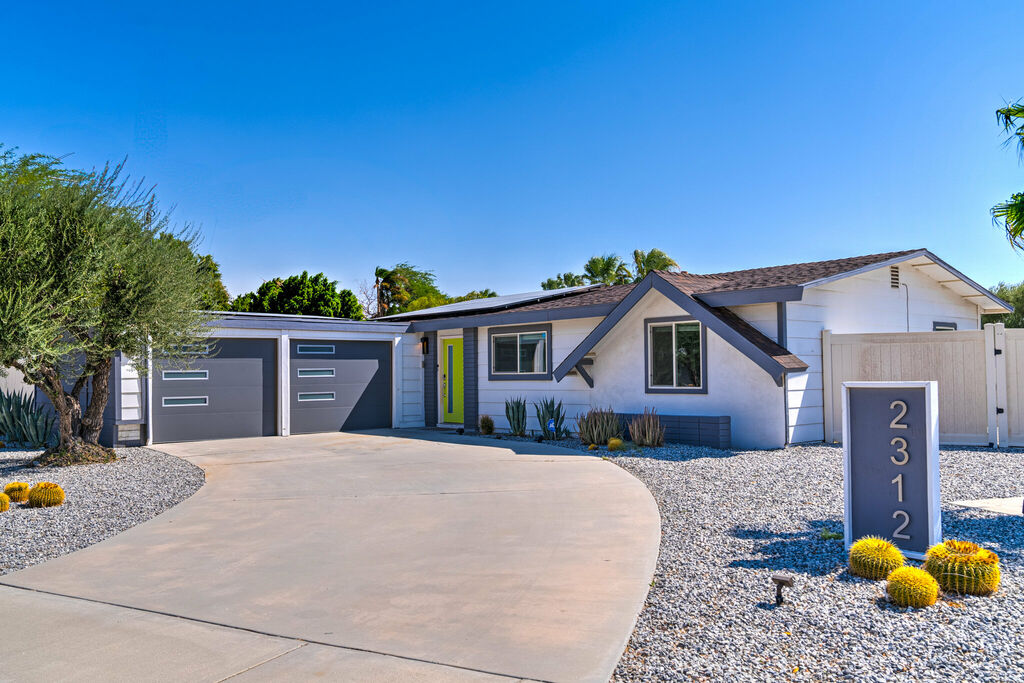 Welcome to your Palm Springs Escape! Step into this meticulously designed 1968 home located in a vibrant neighborhood and immerse yourself in a world of coastal charm and desert tranquility.
