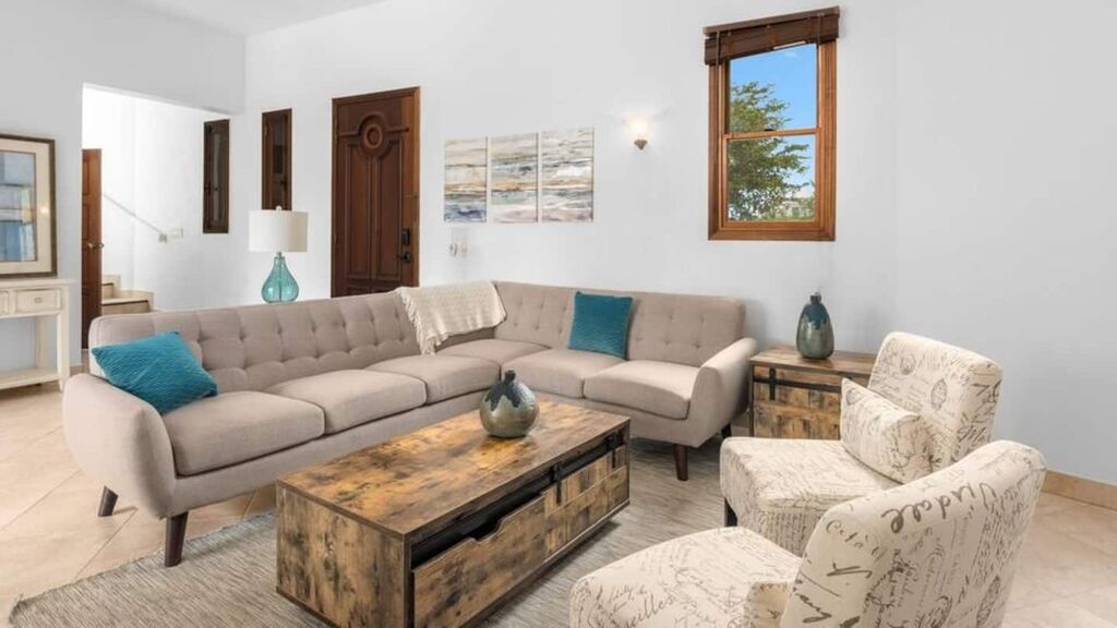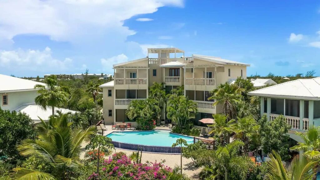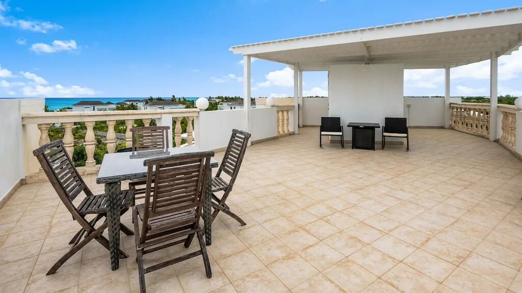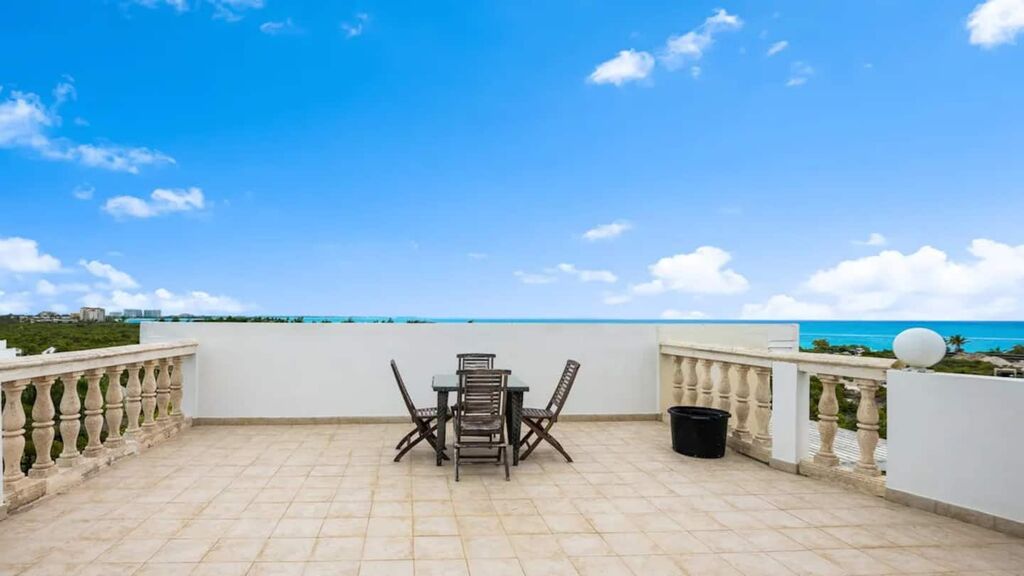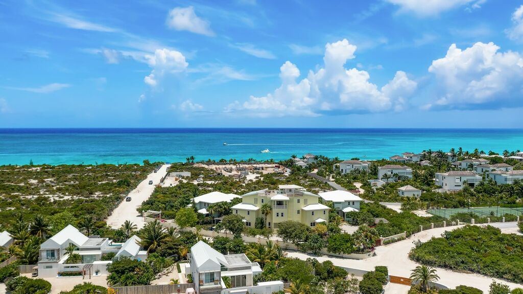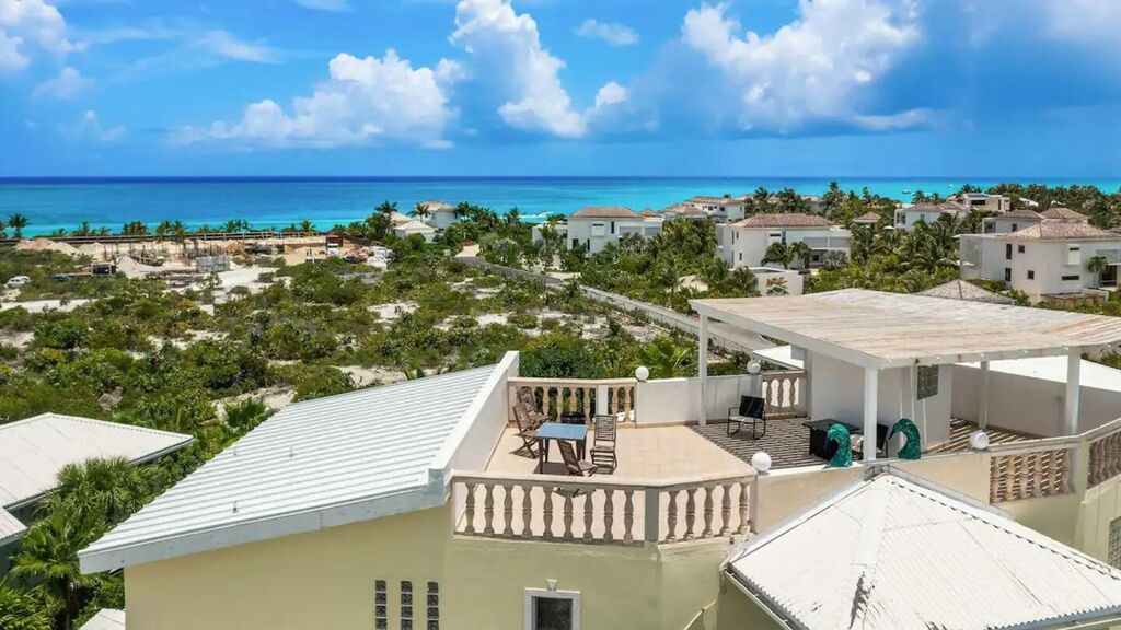 Spanning three floors, this home boasts unobstructed ocean views that stretch over Grace Bay from the second and third levels. The top floor even features a rooftop deck adorned with a cozy firepit, providing a breathtaking vantage point to enjoy the surrounding beauty.