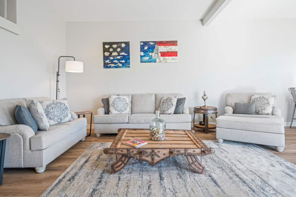 The home features four beautifully appointed bedrooms: The master bedroom offers a spacious king-size bed and an ensuite bathroom. The second bedroom boasts a plush queen bed, while the remaining two bedrooms each have two cozy twin beds, perfect for family members or friends traveling together. Our bedrooms and bathrooms are stocked with soft, hotel-style linens and towels, ensuring a spa-like experience every day of your stay. All rooms are tastefully decorated to reflect the warm, inviting atmosphere of this getaway.