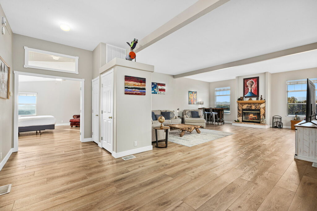 Start your mornings by cooking up a delicious breakfast in the fully equipped kitchen, which has everything you need to create a feast for the family. Then, step out onto the back porch with a cup of coffee in hand, where you’ll be greeted by breathtaking views of the surrounding landscape and you can enjoy a peaceful, relaxing moment in this tranquil setting.