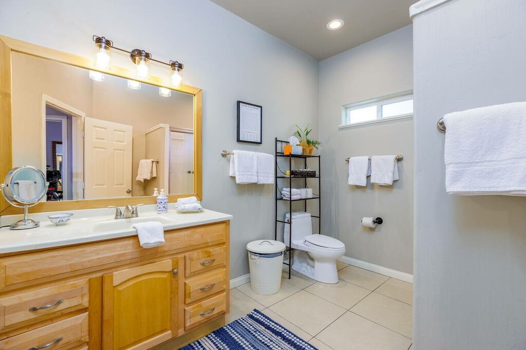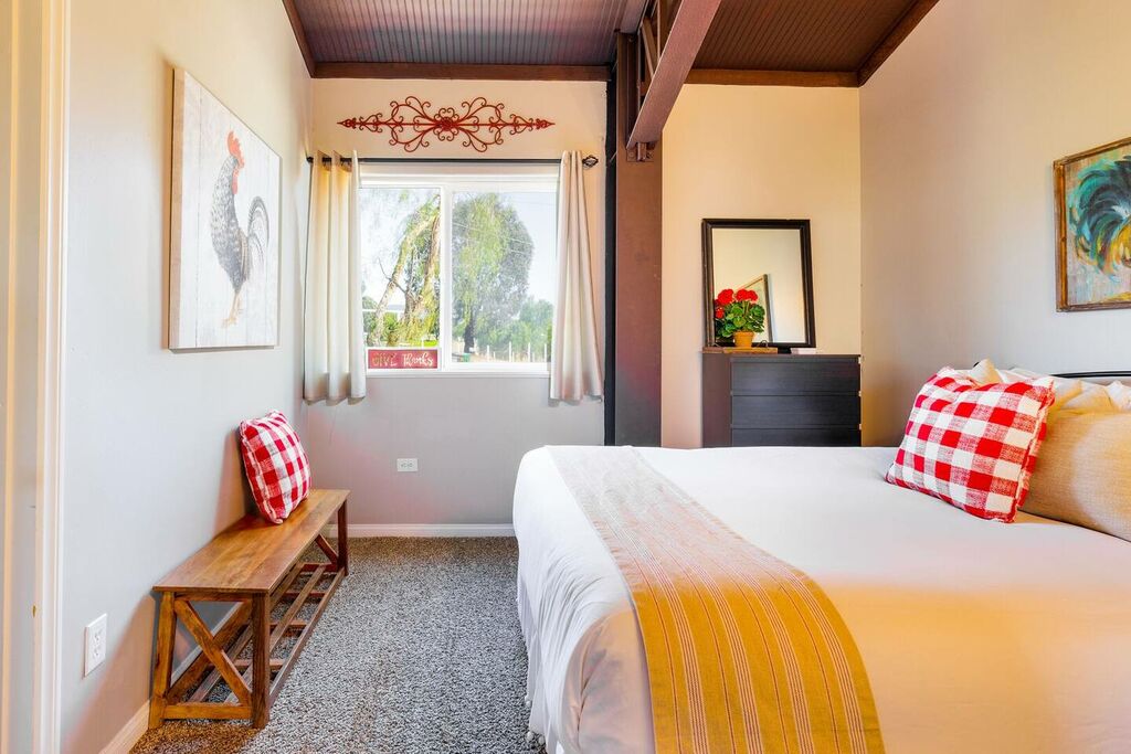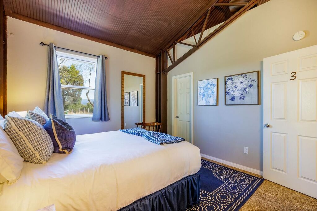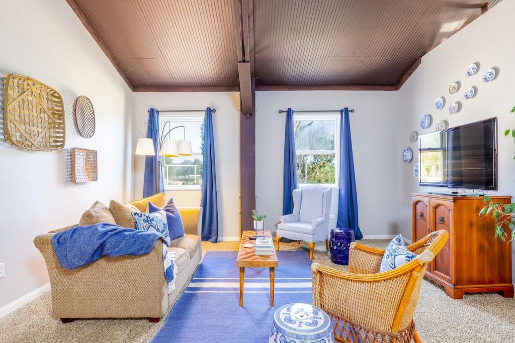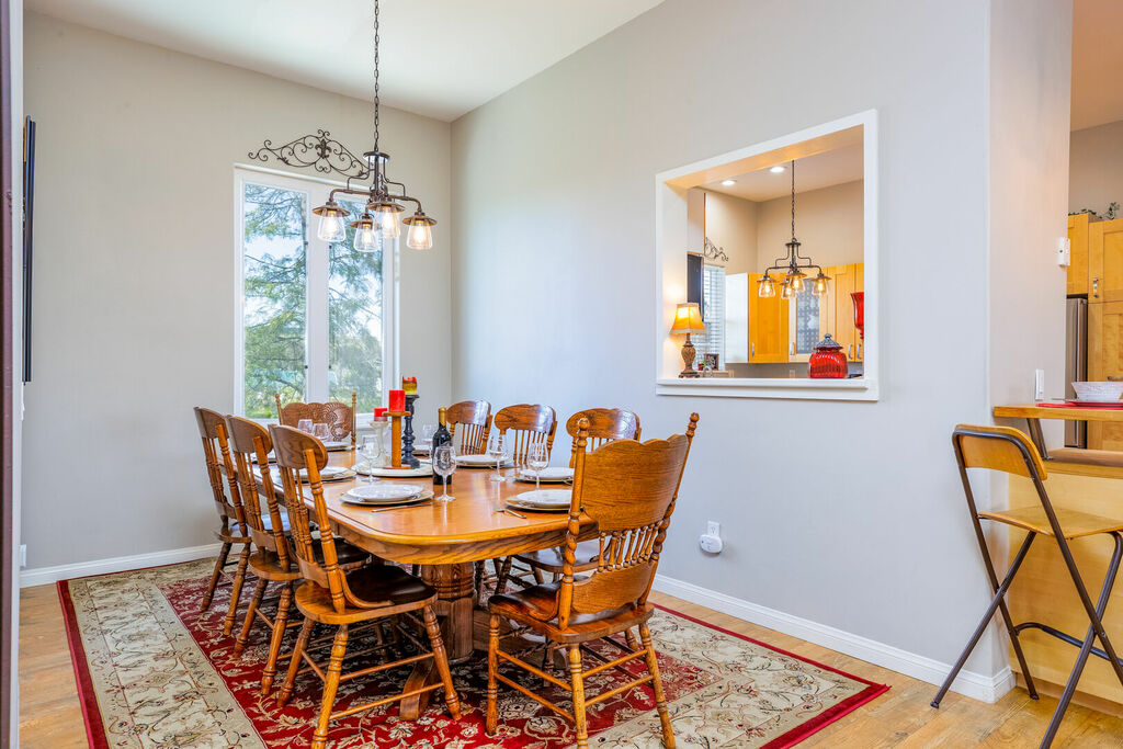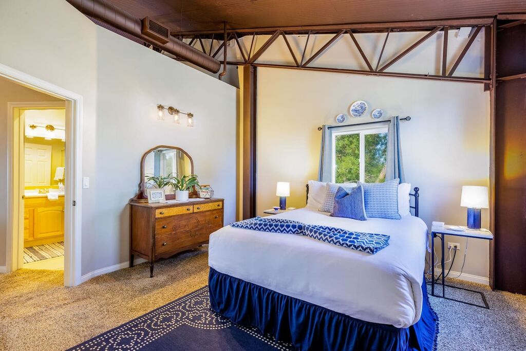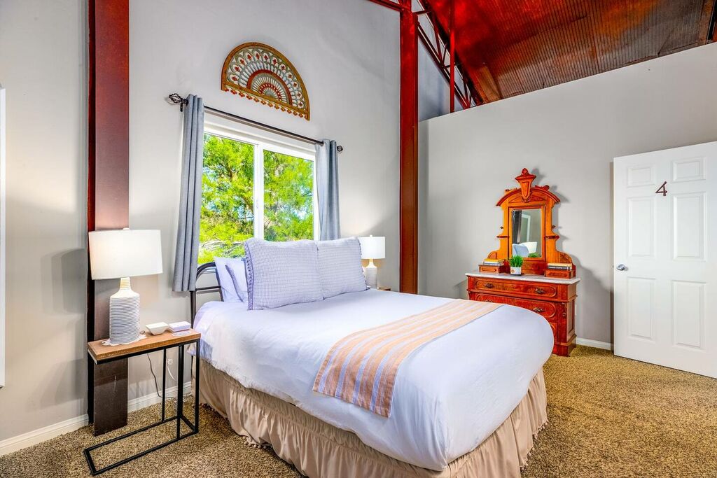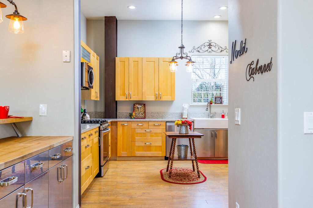 The upstairs is a loft style floor plan with a spacious and open living environment for all the family to congregate and play. Step inside to find a spacious living area with high ceilings and large windows that flood the space with natural light. The comfortable seating provides the perfect place to relax and unwind after a day of exploring the local wineries.