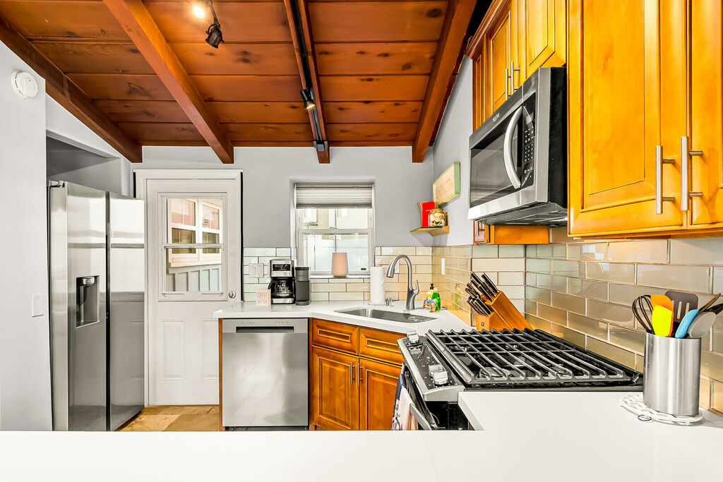 The spacious front patio is outfitted with loungers, seating, and a BBQ grill, offering a private spot to gather while still being just moments from the sand. Inside, the fully equipped modern kitchen features both a Keurig and a traditional drip coffee maker, along with everything needed for preparing meals at home. The cozy living room includes a smart TV with YouTube TV, and air conditioning throughout the home ensures comfort year-round. Beach-ready extras such as towels and chairs are provided, and you’re within easy walking distance to the boardwalk, volleyball courts, local restaurants, nightlife, and the iconic rides and attractions of Belmont Park. For larger groups, there’s also the option to rent Sea-Battical II, a separate one-bedroom unit located just behind the property. A starter supply of essentials—including soaps, paper products, dishwasher detergent, and laundry detergent—is provided, and additional amenities such as an iron, ironing board, hair dryer, and in-home washer and dryer add extra convenience.