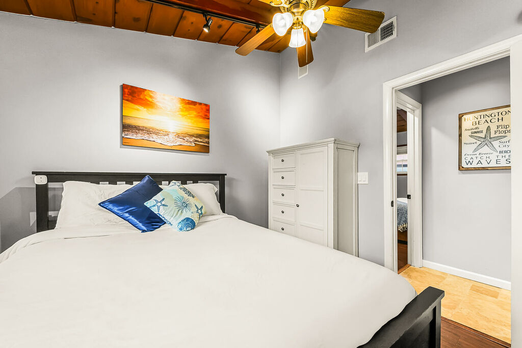 Sleeping arrangements are thoughtfully designed for comfort and flexibility. The master bedroom features a queen bed and a private ensuite bathroom, while Bedrooms 2 and 3 each offer a queen bed as well. The living room includes a sleeper sofa, allowing the home to comfortably accommodate additional guests. With three inviting bedrooms, two well-appointed bathrooms, and welcoming indoor-outdoor spaces that embody the true beach-house spirit, Sea-Battical is the perfect setting for making lasting memories with family, friends, and even your four-legged companions.