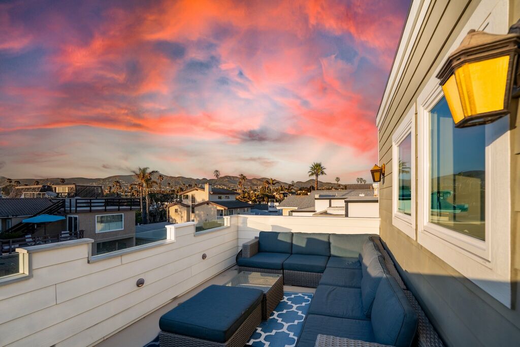 Step outside to enjoy the fresh sea air in the beautifully landscaped backyard, complete with a gas grill for evening barbecues. Rinse off after a beach day in the convenient outdoor shower, then head to the rooftop deck to watch the sun dip below the Pacific. With high-speed internet, a full laundry room, and a two-car garage—plus extra parking on-site—every detail has been considered for a seamless stay.