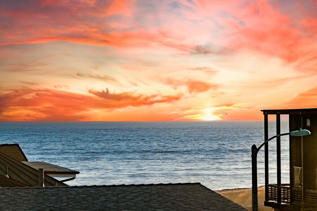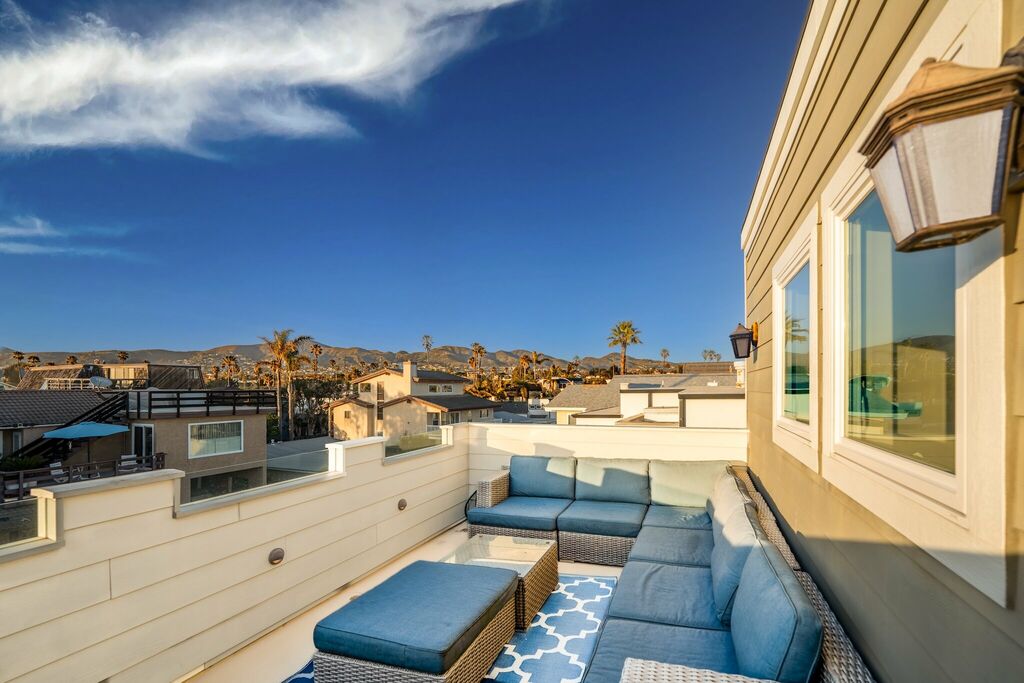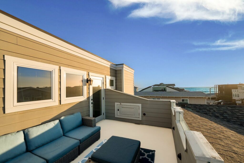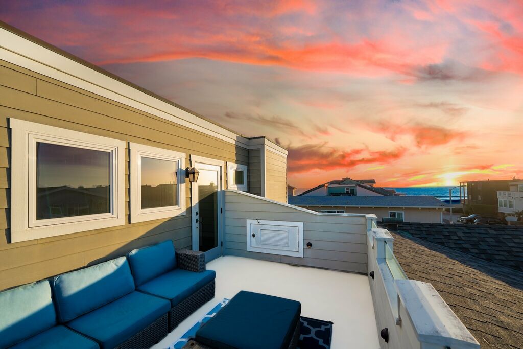 Step outside to enjoy the fresh sea air in the beautifully landscaped backyard, complete with a gas grill for evening barbecues. Rinse off after a beach day in the convenient outdoor shower, then head to the rooftop deck to watch the sun dip below the Pacific. With high-speed internet, a full laundry room, and a two-car garage—plus extra parking on-site—every detail has been considered for a seamless stay.