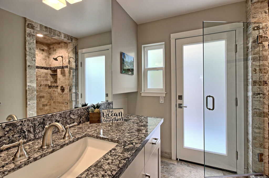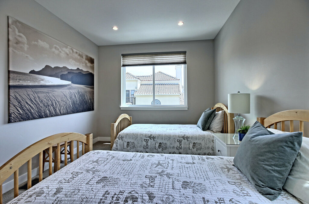 Designed with gatherings in mind, the home features five beautifully appointed bedrooms and three bathrooms, comfortably sleeping ten guests. Wake up in the stunning third-floor primary suite, where a private balcony offers breathtaking ocean views—an idyllic spot for morning coffee or sunset cocktails. The spa-like en-suite bathroom boasts a double vanity and a shower with a view of the beach. Additional bedrooms provide cozy retreats, outfitted with plush bedding and ample closet space.