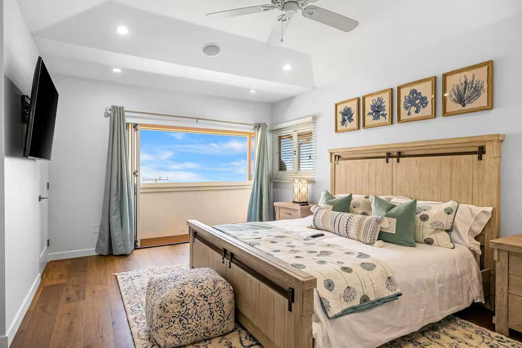 Each of the three bedrooms is a sanctuary of comfort, with Tempur-Pedic mattresses ensuring a restful night's sleep. After a day spent exploring local attractions or enjoying water sports, you’ll appreciate the convenience of the in-home washer/dryer and high-speed WiFi. Whether you're gathered around the outdoor fire table, enjoying a quiet evening by the fireplace, or simply soaking in the views from the patio, this home offers everything you could want in a coastal vacation.