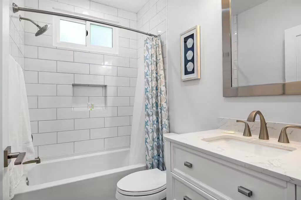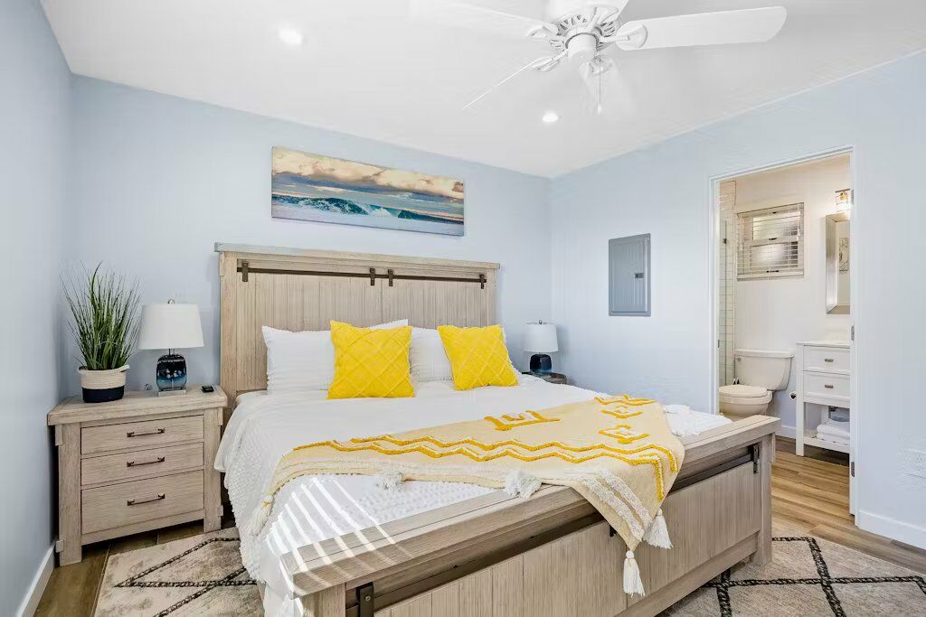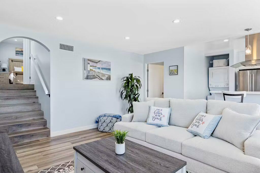 This charming two-bedroom cottage, just minutes from the vibrant downtown and a mile from the golden shores, offers a perfect setting for coastal tranquility and relaxation. Bathed in natural light, the open living spaces boast stylish décor and a serene ambiance, making it an inviting retreat for small families or groups.