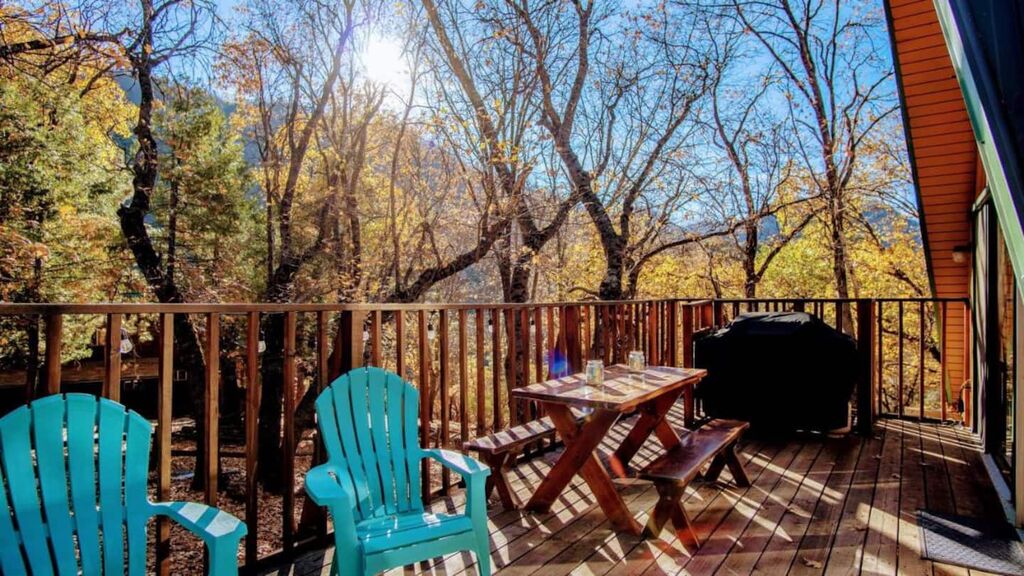 -A-frame is located in Sequoia National Monument (not park). There are no cabins in Giant Sequoia National Park that is why the monument is great as we are 5 minutes from the big trees, trails and dogs are allowed on trails
