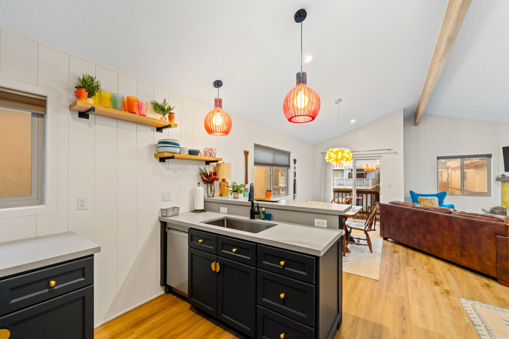Inside, the space is comfortable, welcoming, and thoughtfully arranged for a relaxing stay. You’ll find a fully equipped kitchen with everything you need to prepare meals at home, whether it’s a quick breakfast before heading to the beach or a relaxed dinner after a day of exploring the coast. The home features one full bathroom and two inviting bedrooms, each furnished with a cozy queen-sized bed designed to help you rest and recharge after a day in the sun.