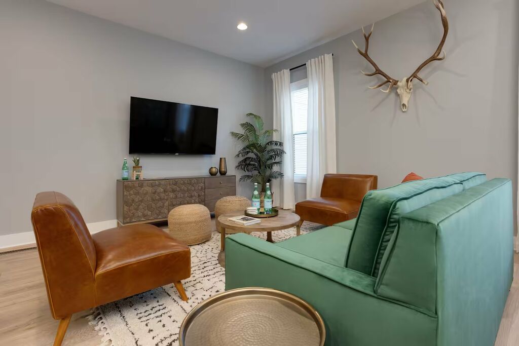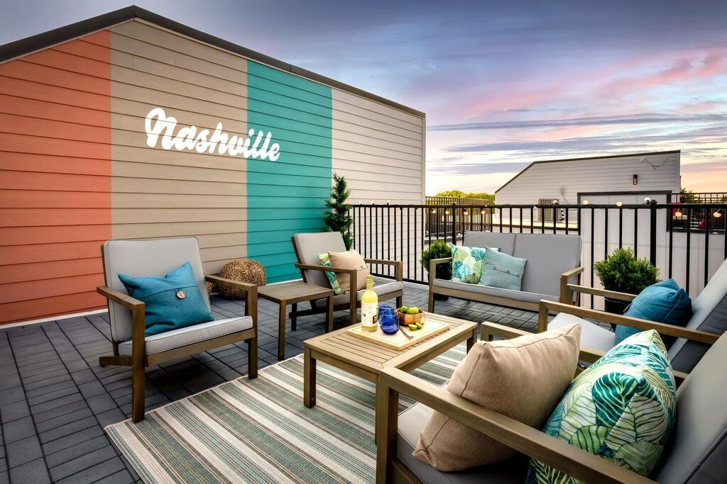 But the crown jewel of this property is the rooftop deck. Whether you’re savoring your morning coffee or taking in the twinkling skyline at night, the panoramic city views provide the perfect backdrop for your Nashville experience.