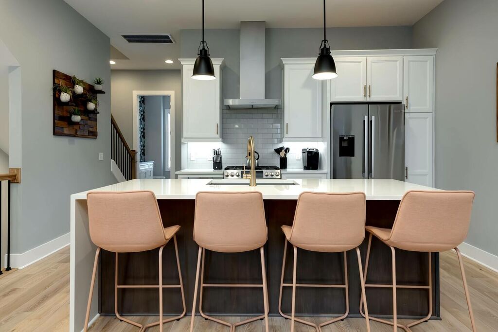 The heart of the home is the main floor, featuring a sleek, open-concept design. A fully equipped kitchen with high-end appliances and seating for up to 16 ensures you have everything you need for shared meals or celebrations. The adjoining dining and living areas, adorned with art-inspired décor, offer ample space to unwind, connect, and enjoy the luxury of contemporary furnishings.