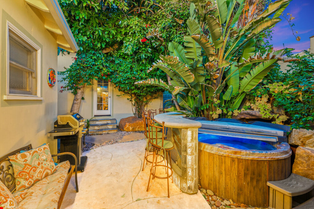 Step outside to your private backyard oasis, complete with a tropical vibe, bar, jacuzzi, and waterfall. Multiple patios and sitting areas allow you to enjoy Ventura’s beautiful coastal weather alfresco.