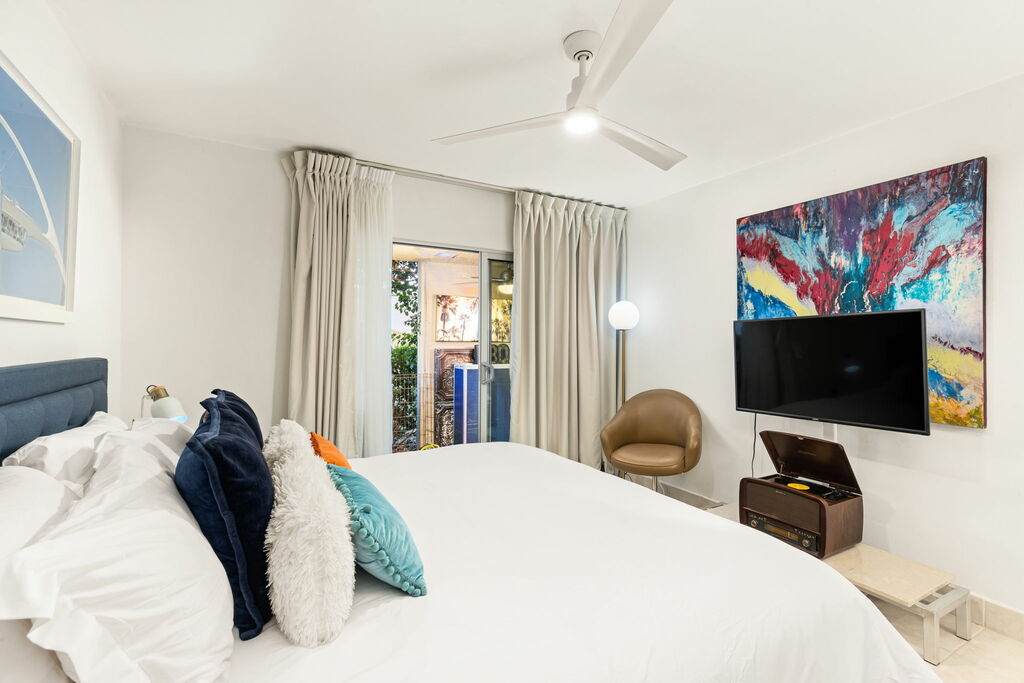 Step inside to find a comfortable living space with modern amenities, including a fully equipped kitchen, a spacious bedroom with a plush king-sized bed, and ensuite bathroom. The living area opens up to your own private patio, complete with outdoor seating and a BBQ grill—perfect for enjoying sunny days and starry nights in the privacy of your own space.