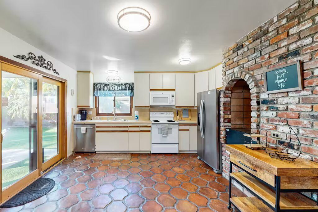 Inside, the home opens up with light-filled spaces designed for both relaxation and connection. The living room invites you to sink into comfortable seating, with a smart TV on hand for casual movie nights or a slow start to your day. The kitchen is fully stocked, waiting for you to pull together everything from a quick snack to a home-cooked feast. Meals are best shared at the dining table, but when the weather calls, you’ll find the patio a perfect spot to enjoy the outdoors with the warmth of the sun. The dining table easily doubles as a hub for board games, friendly competition, or simply catching up over the day’s adventures.