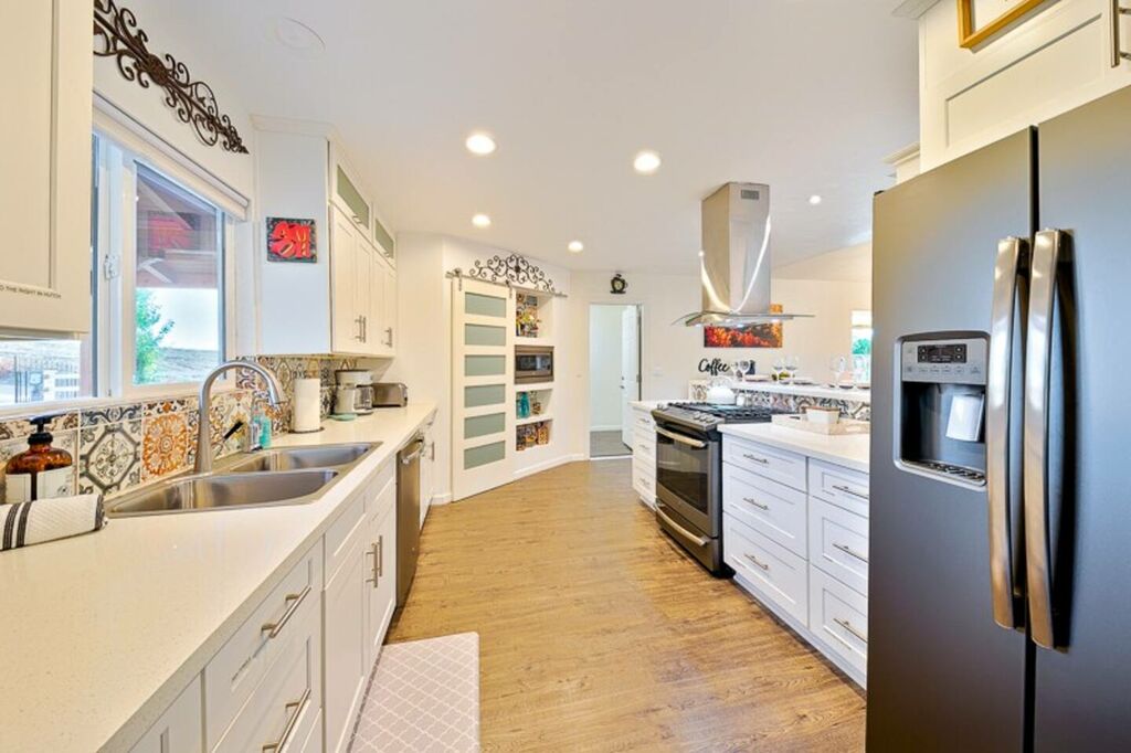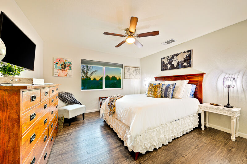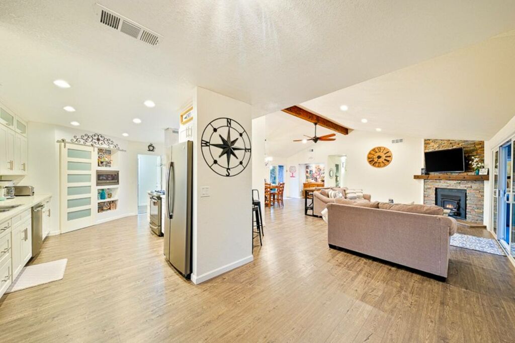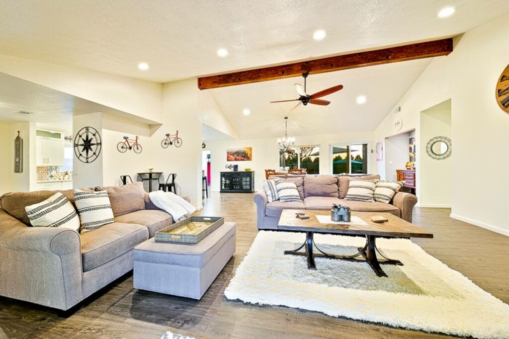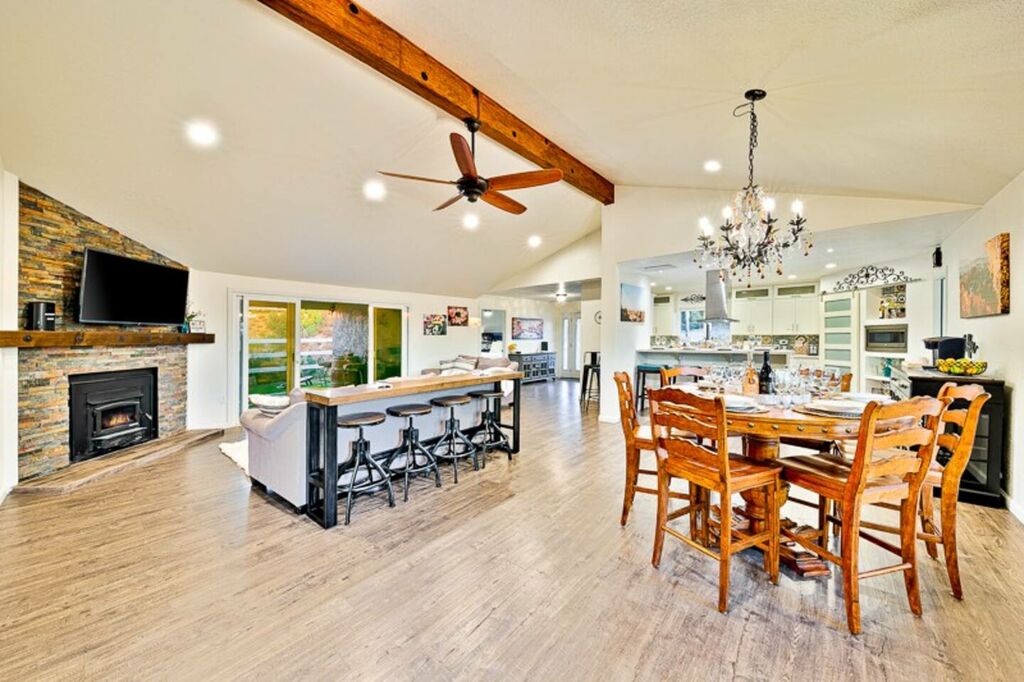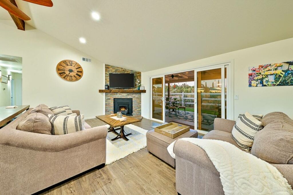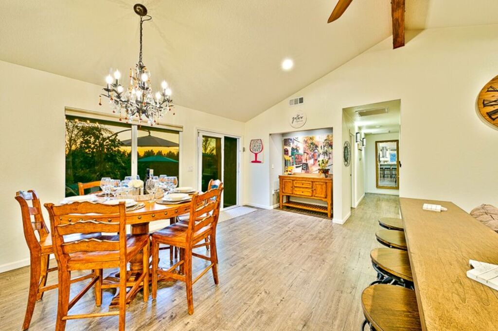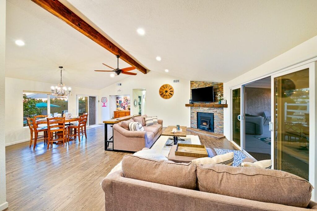 This single-story four-bedroom, three-bath, 2047 sq. ft. home, located on 2+ acres. It also has a newly installed pool with a spa and a large grassy lawn where the kids can play so you can easily relax and recharge after your day’s adventures. A covered patio area off the family room - with a barbecue and an outside dining table - also creates a fun nook to share food and fun together.