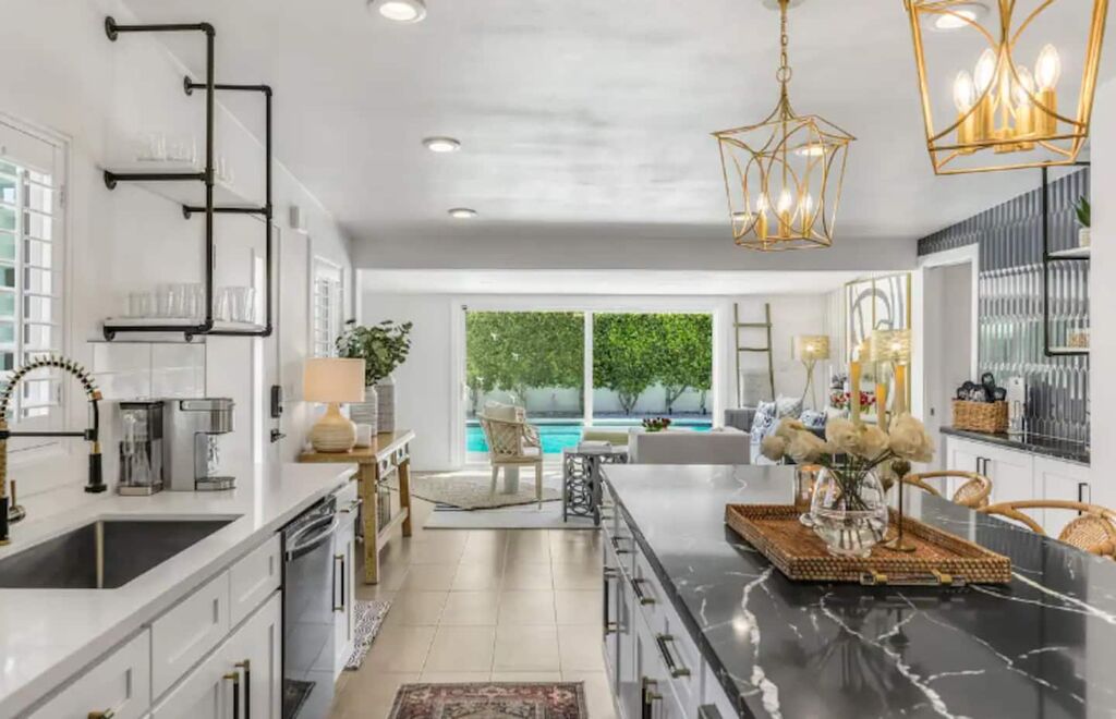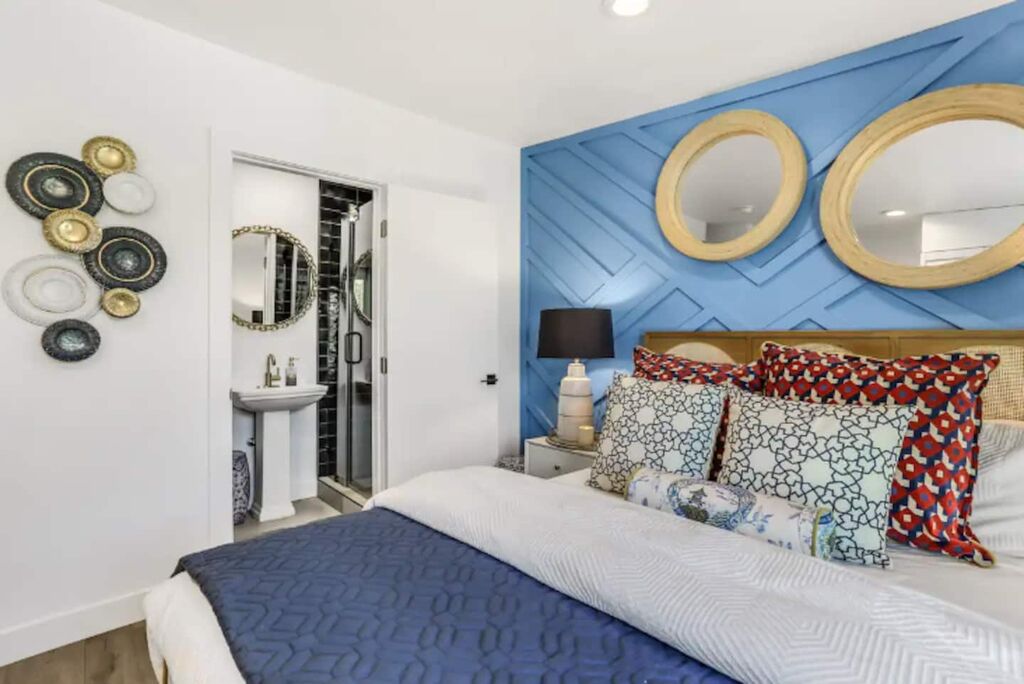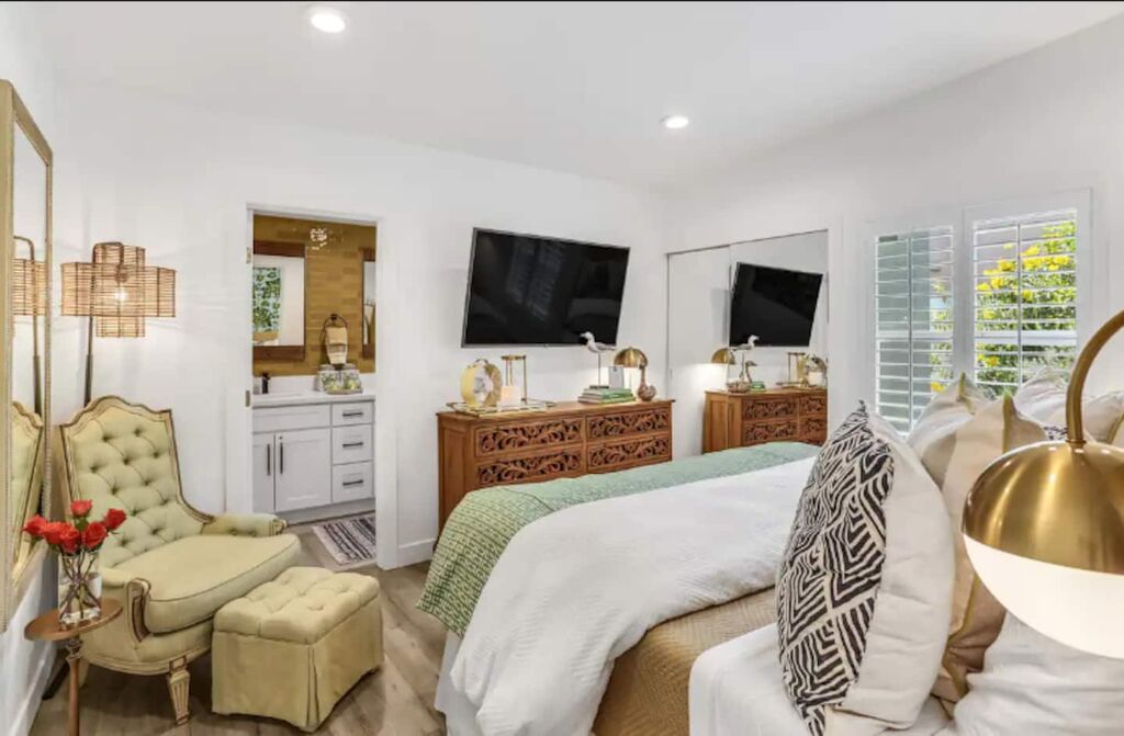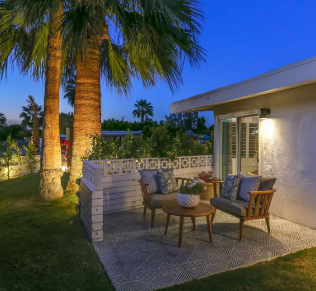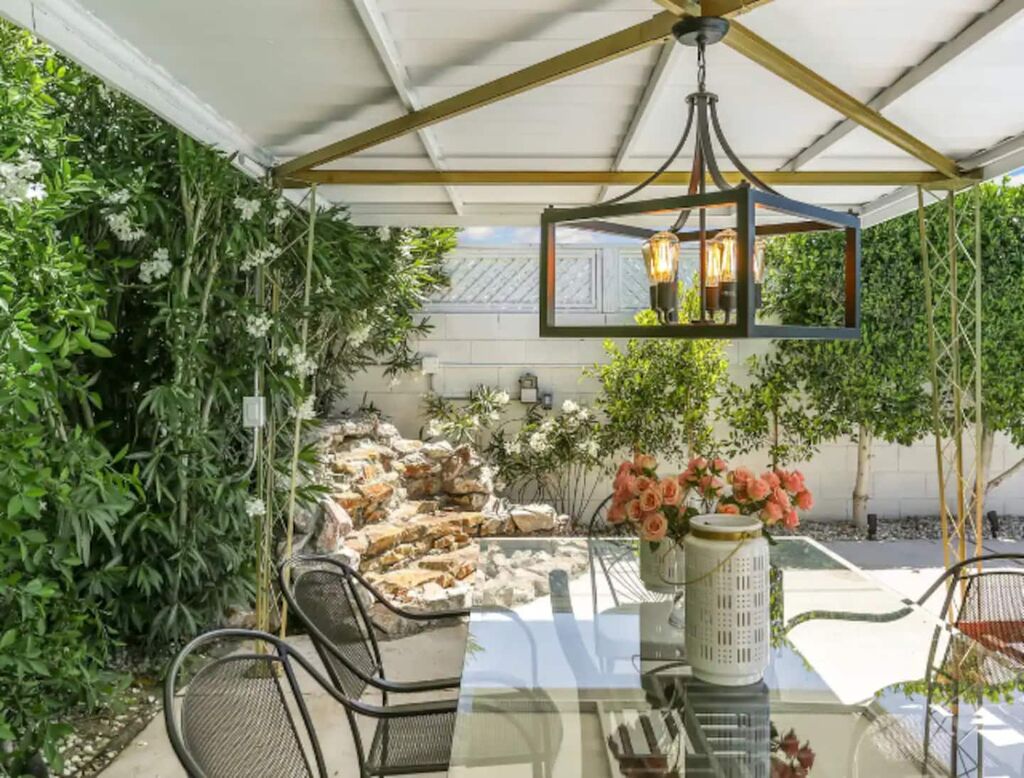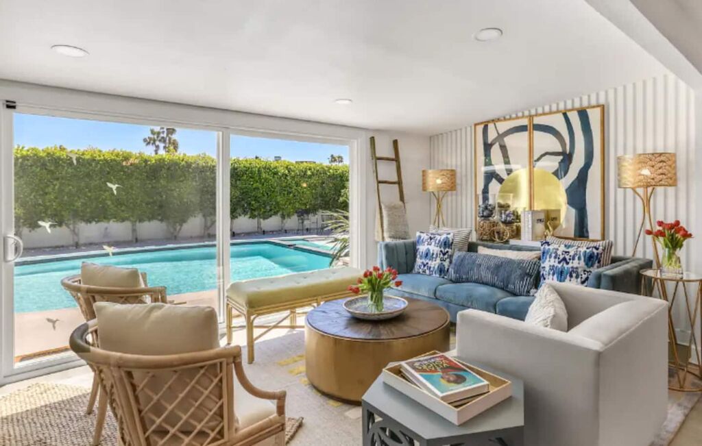 This 3-bedroom, 3-bath residence boasts designer furnishings, custom bedding, exquisite tile work, and two captivating water features. Take pleasure in a heated pool, a spacious hot tub, and a private oasis of Palm Springs-inspired landscaping adorned with three citrus trees. Conveniently located just a 5-minute drive from the airport and 1.7 miles from downtown Palm Springs.
