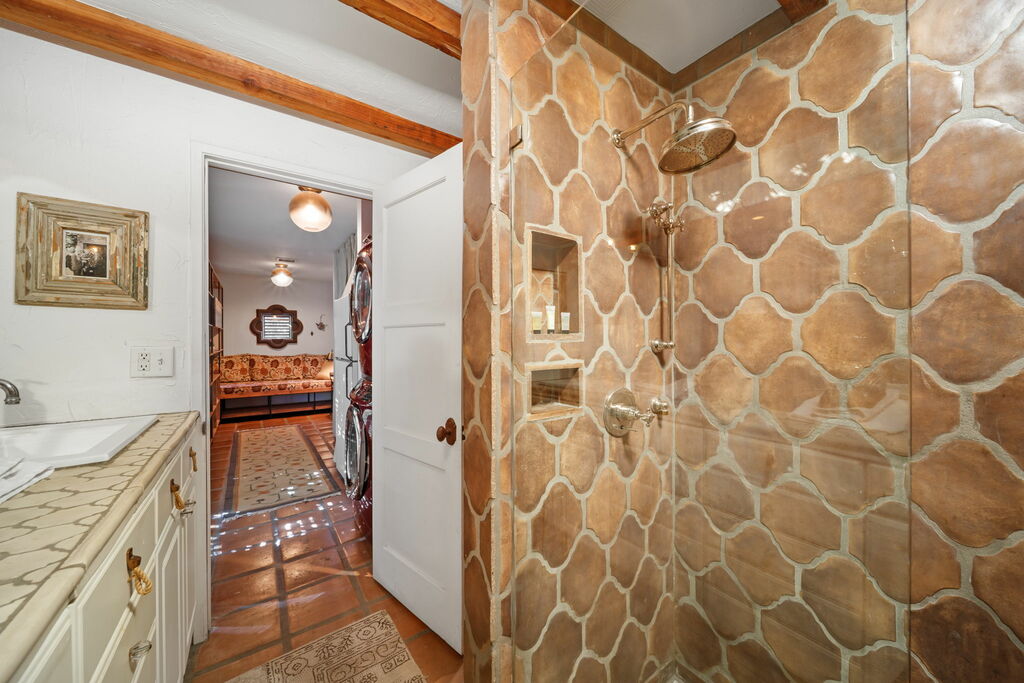In the backyard, a serene pool and spa await, offering you space to drift into an early morning float or linger around flames under stars with friends or family. The bedrooms carry a restful calm, the living rooms offer conversation and quiet, and every room seems to invite you to stay—even after the sun sets.