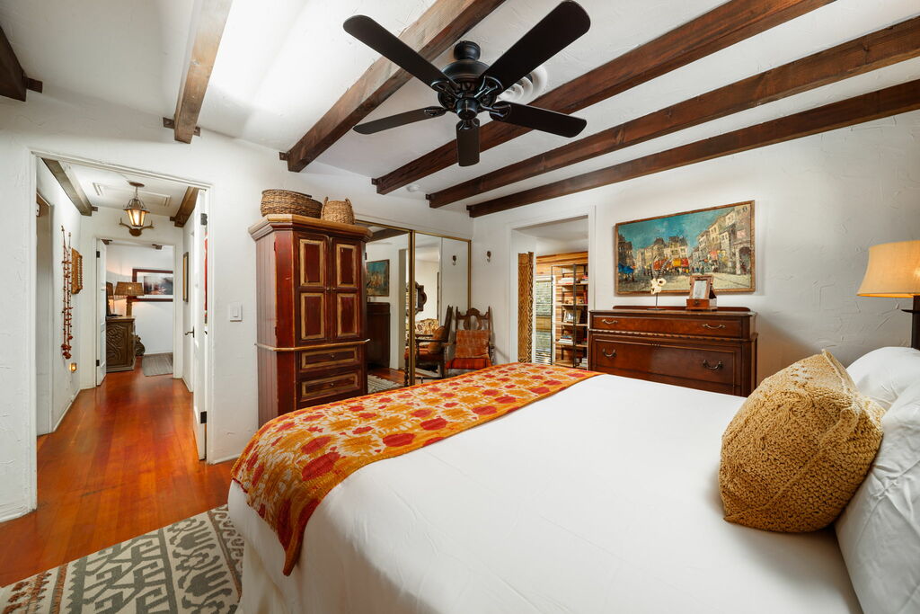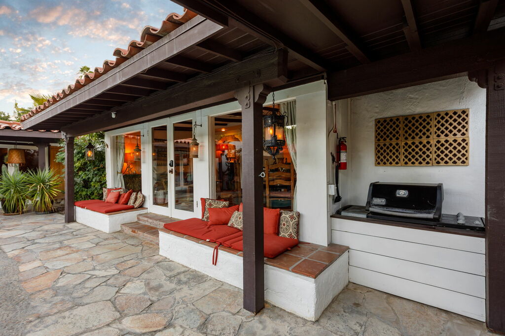 The architecture speaks of legacy and presence: built in the 1940s and referenced among historic homes of Palm Springs. The décor embraces the deeper tones of that era—textural woods, ambient lighting, and an aesthetic that invites you to unwind into the moment rather than rush past it.